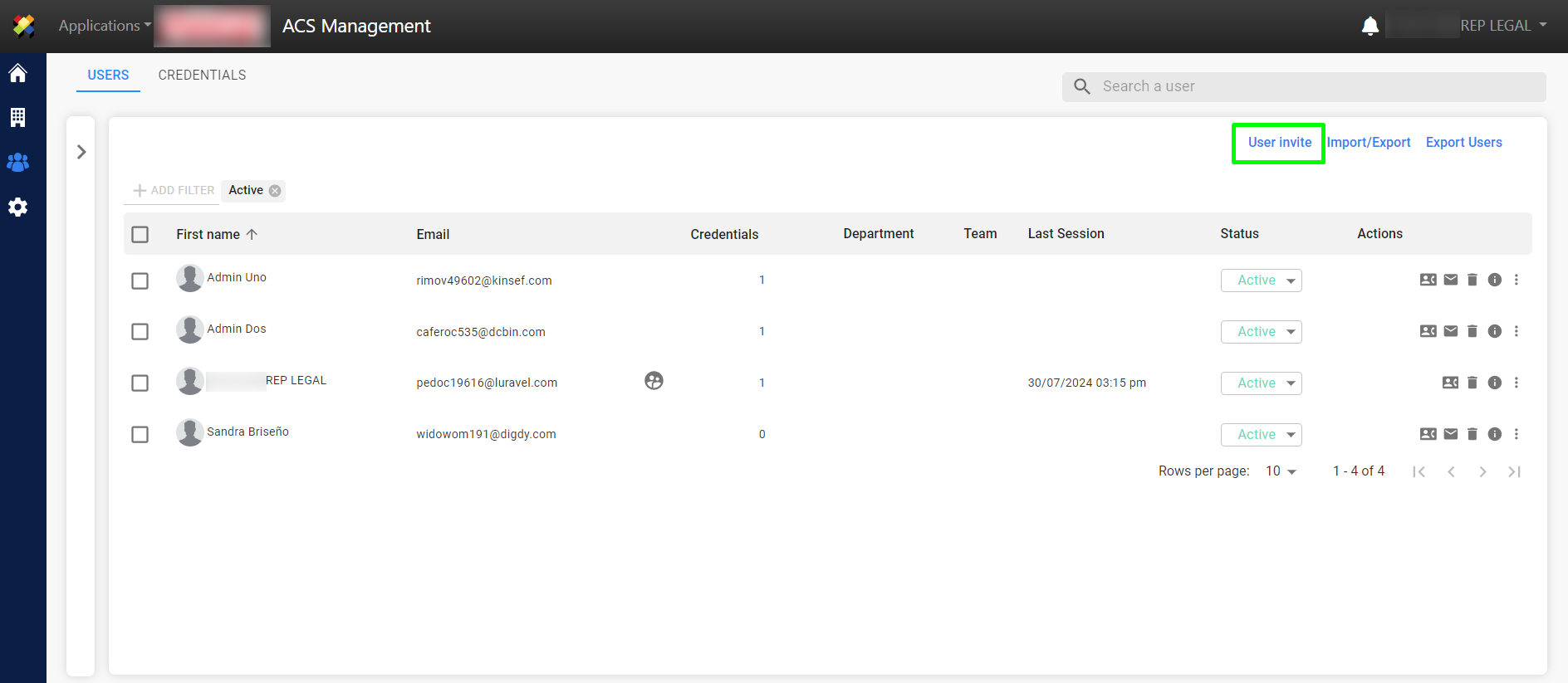 2. Click the “Invite User” button.