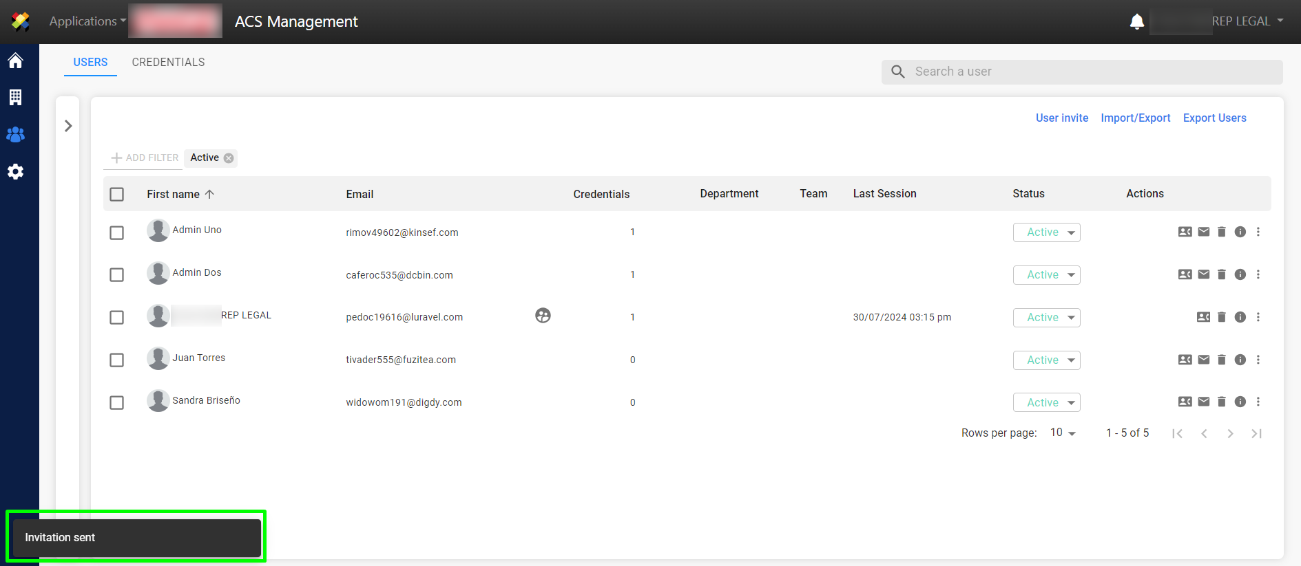 4. A confirmation message will be displayed confirming the user invitation.