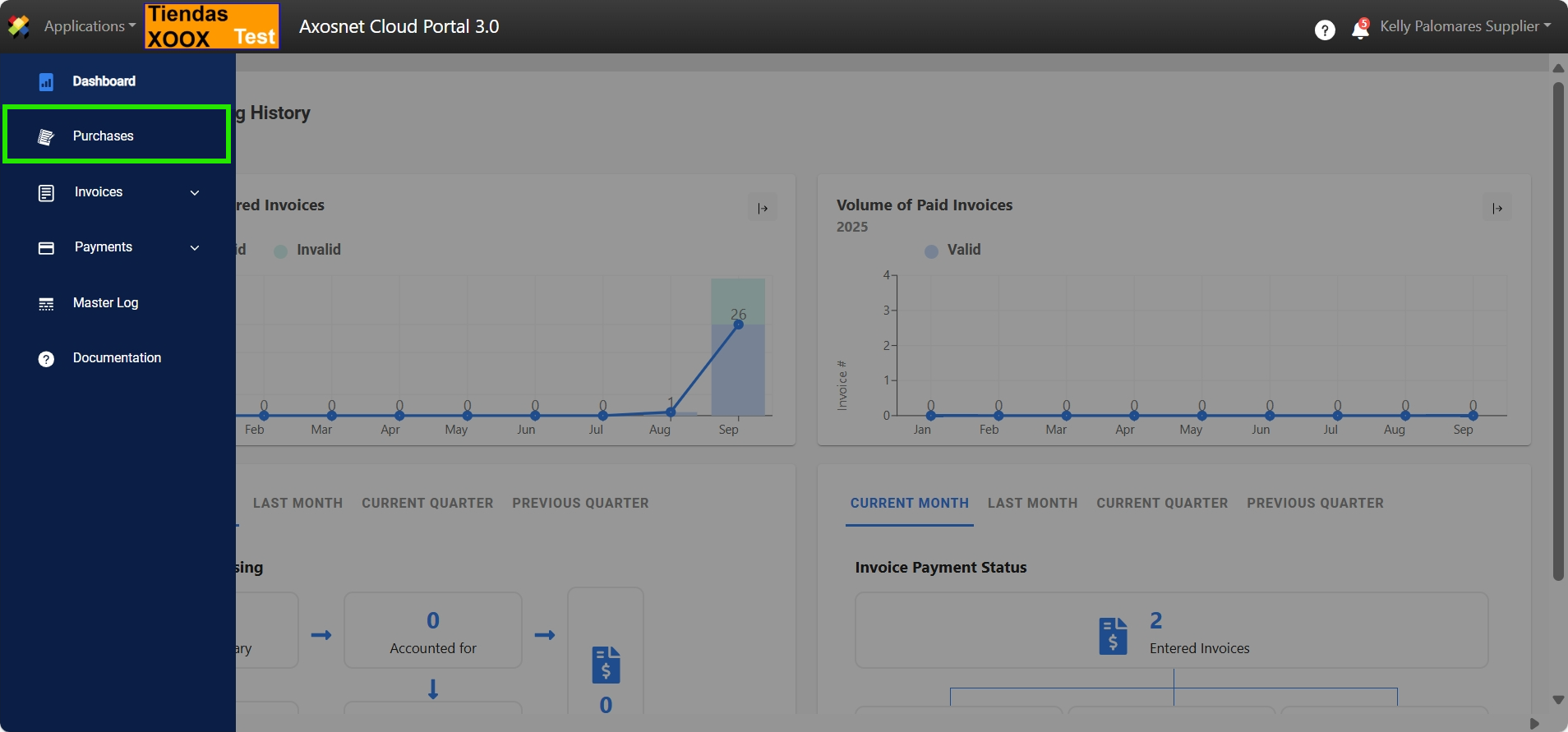 3. Within ACP 3 select the Purchases option in the left side menu, you can click on the icon or move the cursor over it to display the options.