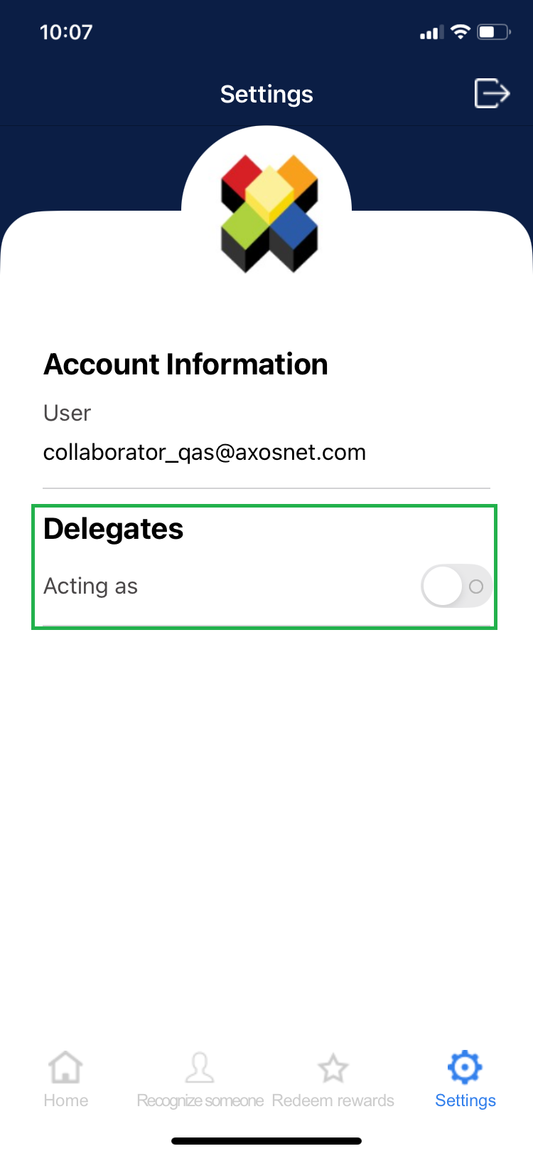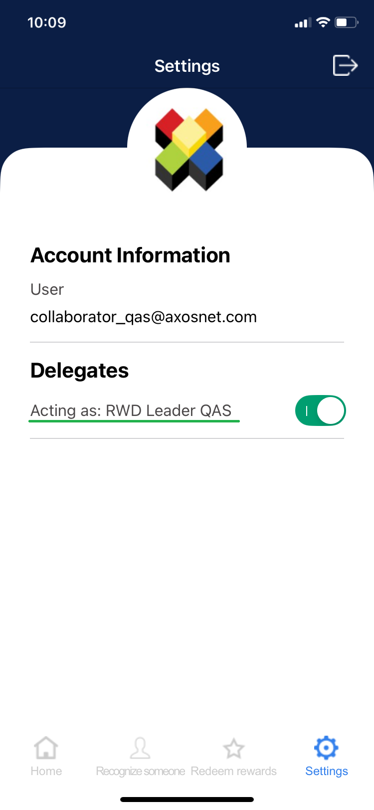 4. After selecting the leader, in the “Delegates” section you will see the text that says “Acting as” plus the name of the user you are substituting.