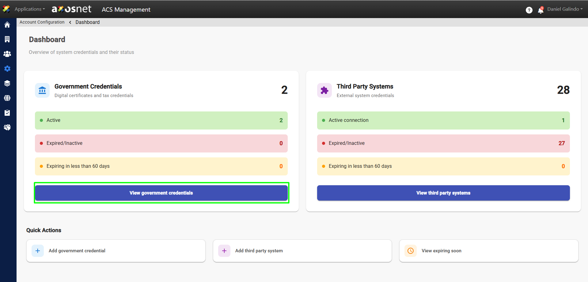 4. Click View Government Credentials.