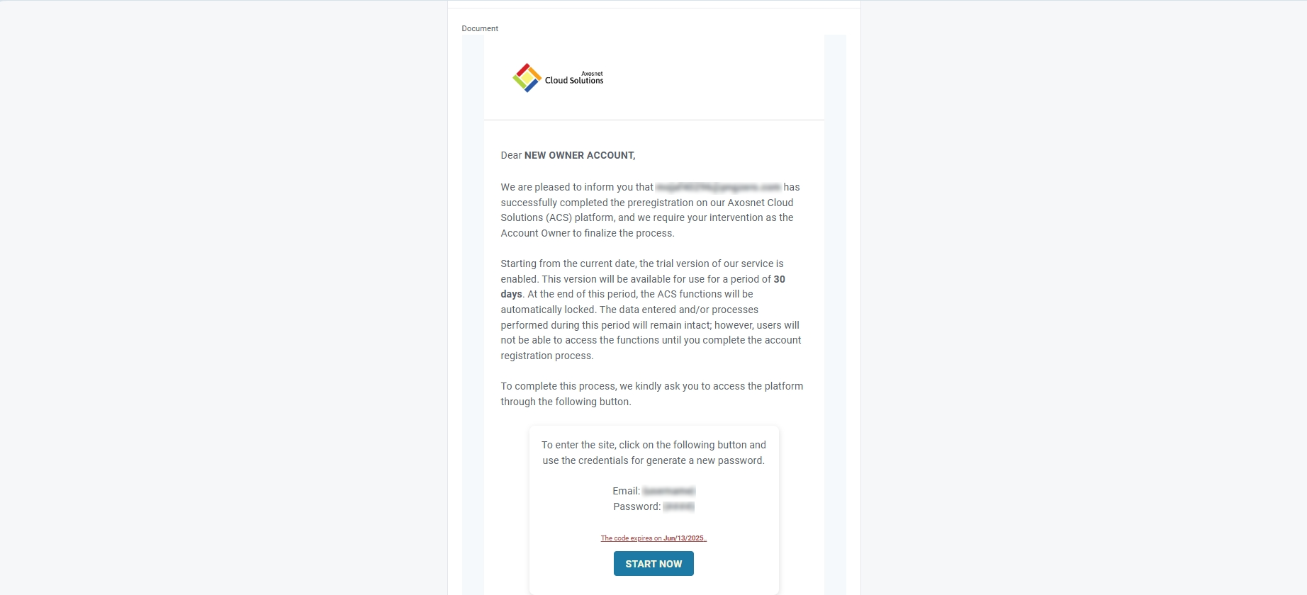 e) The proposed Account Owner will receive the invitation email to continue the registration process.