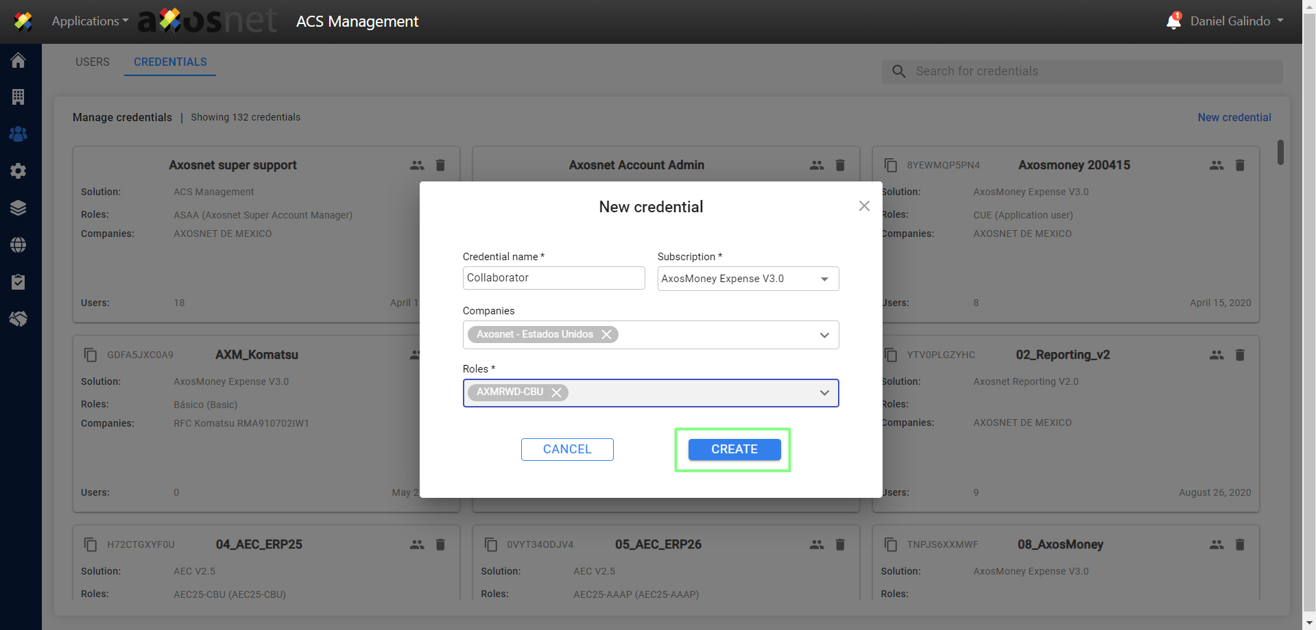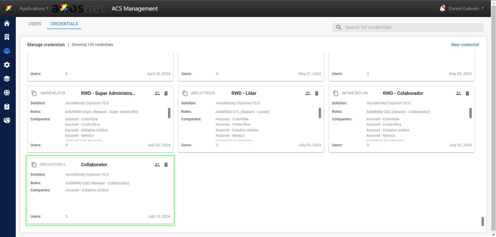 Note: The role that corresponds to the collaborator credential is: CBU
