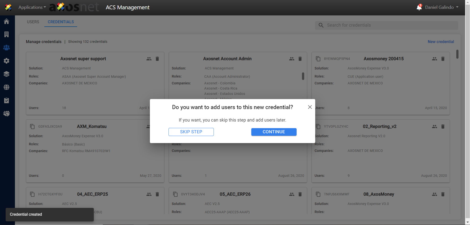 5. The credential has been created and a pop-up window will appear asking if you wish to add users to the new credential, if you wish to do so click “Continue” or if you prefer you can skip this step and do it later.