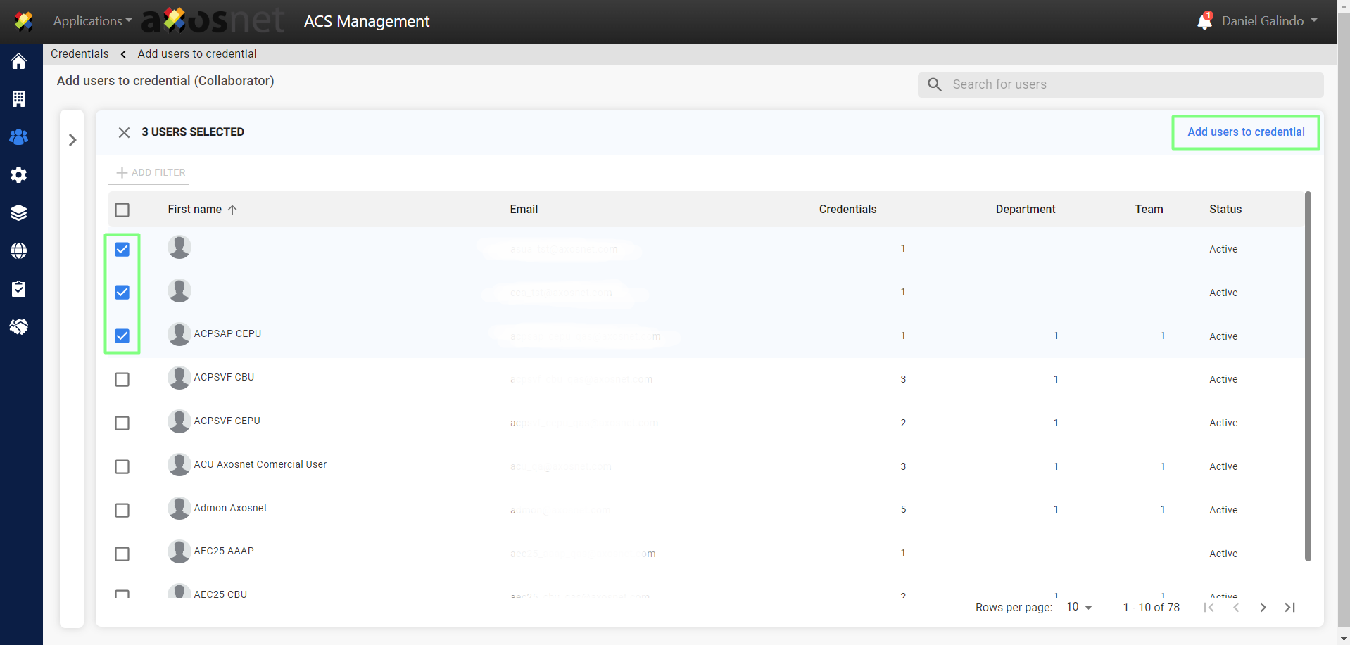 7. Select the users you want to add to the credential and click on “Add users to credential”.