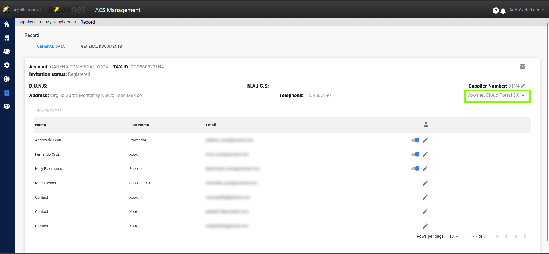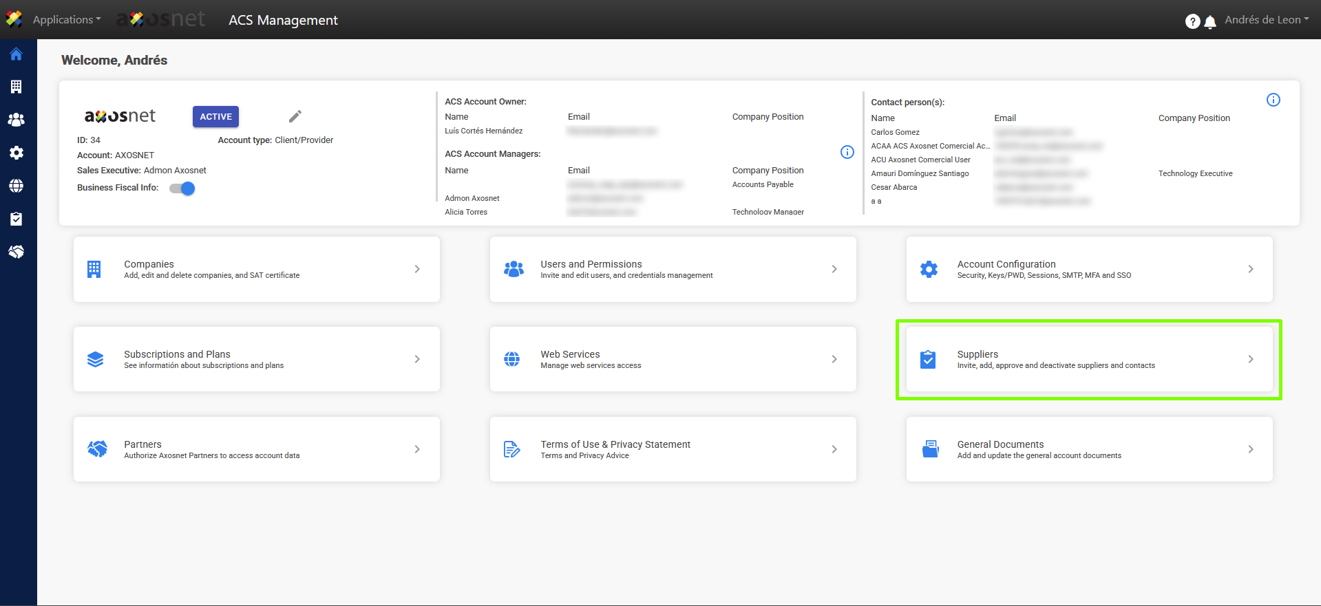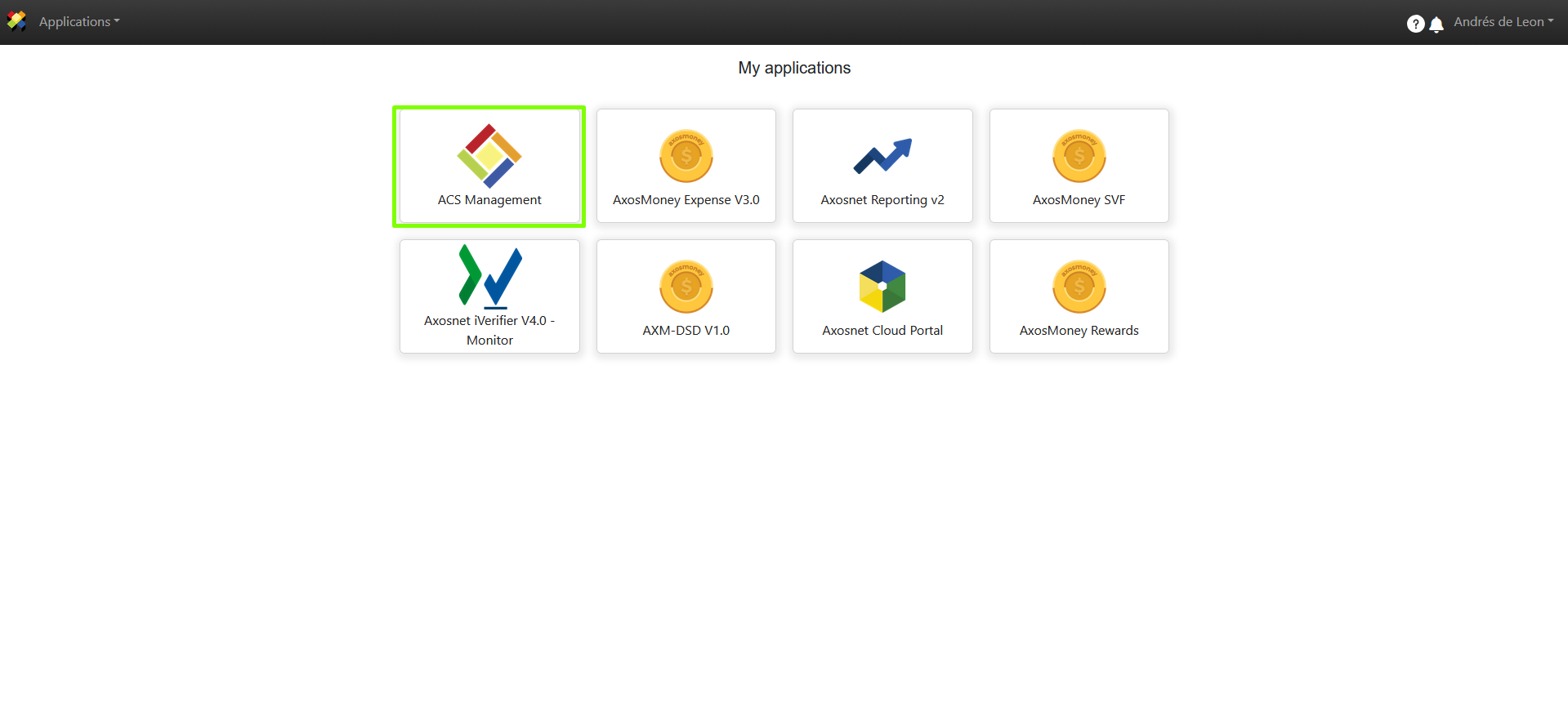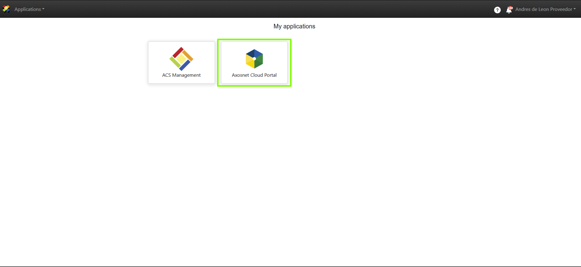 1. Log in to ACS Management and select the Axosnet Cloud Portal option.
