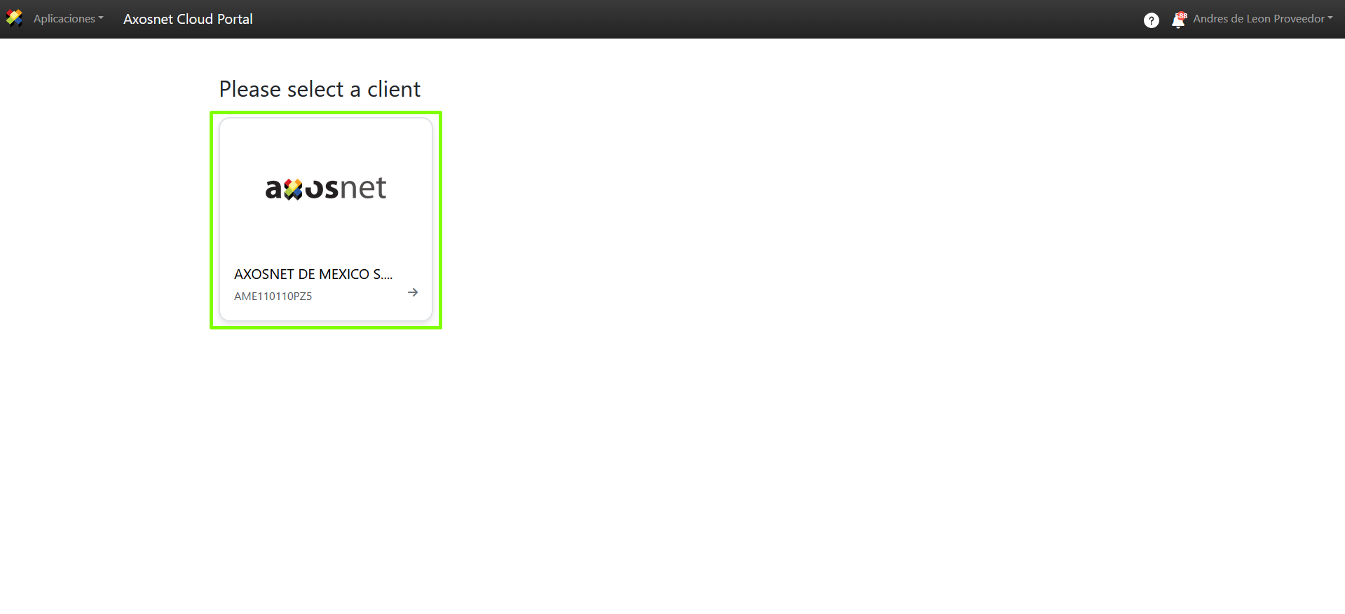 6. Select the relevant application (Axosnet Cloud Portal 3.0)