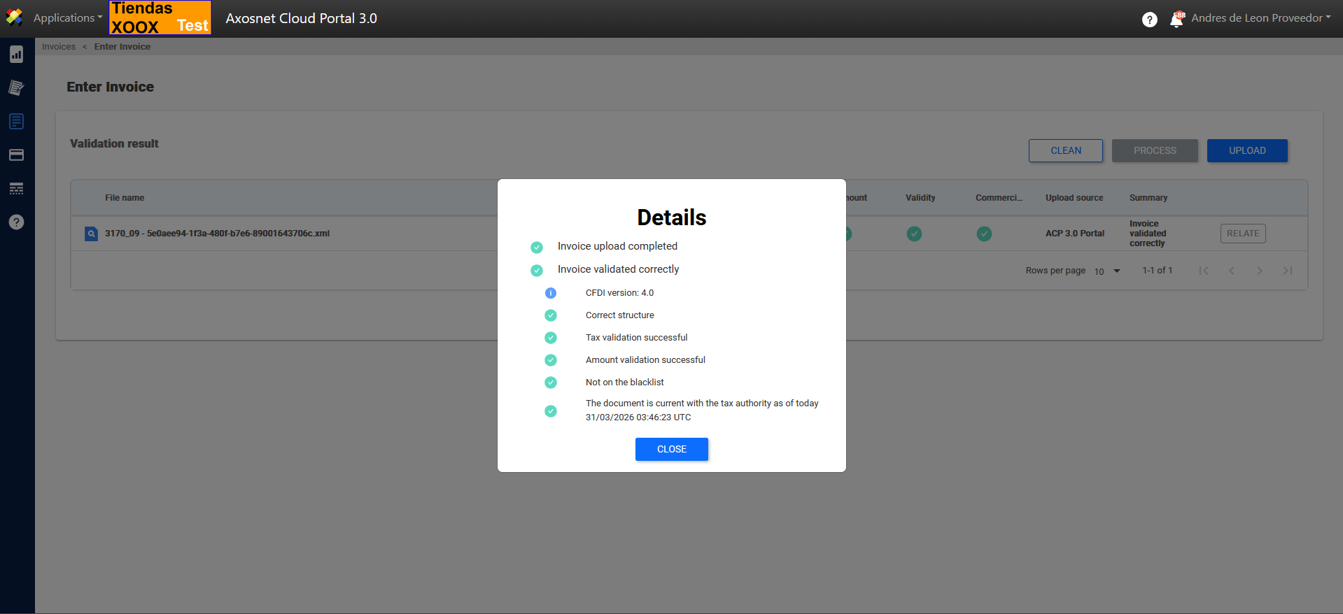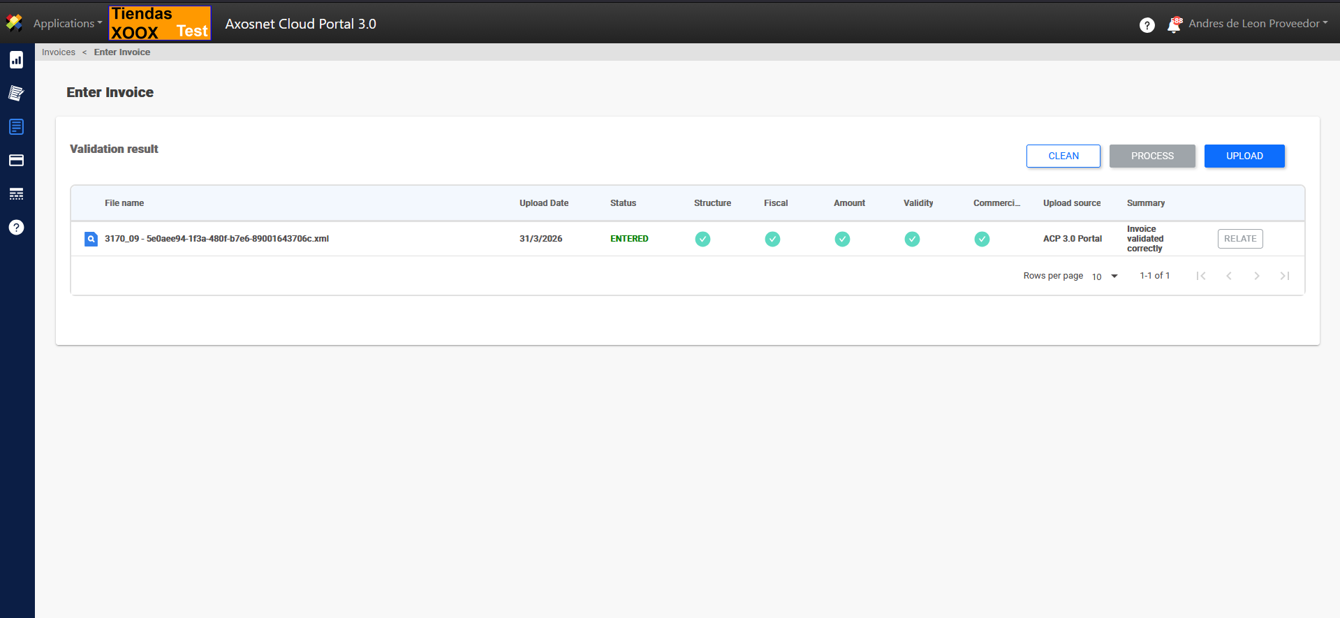 8. Once the invoice is successfully uploaded, it will be displayed with the status “ENTERED”.