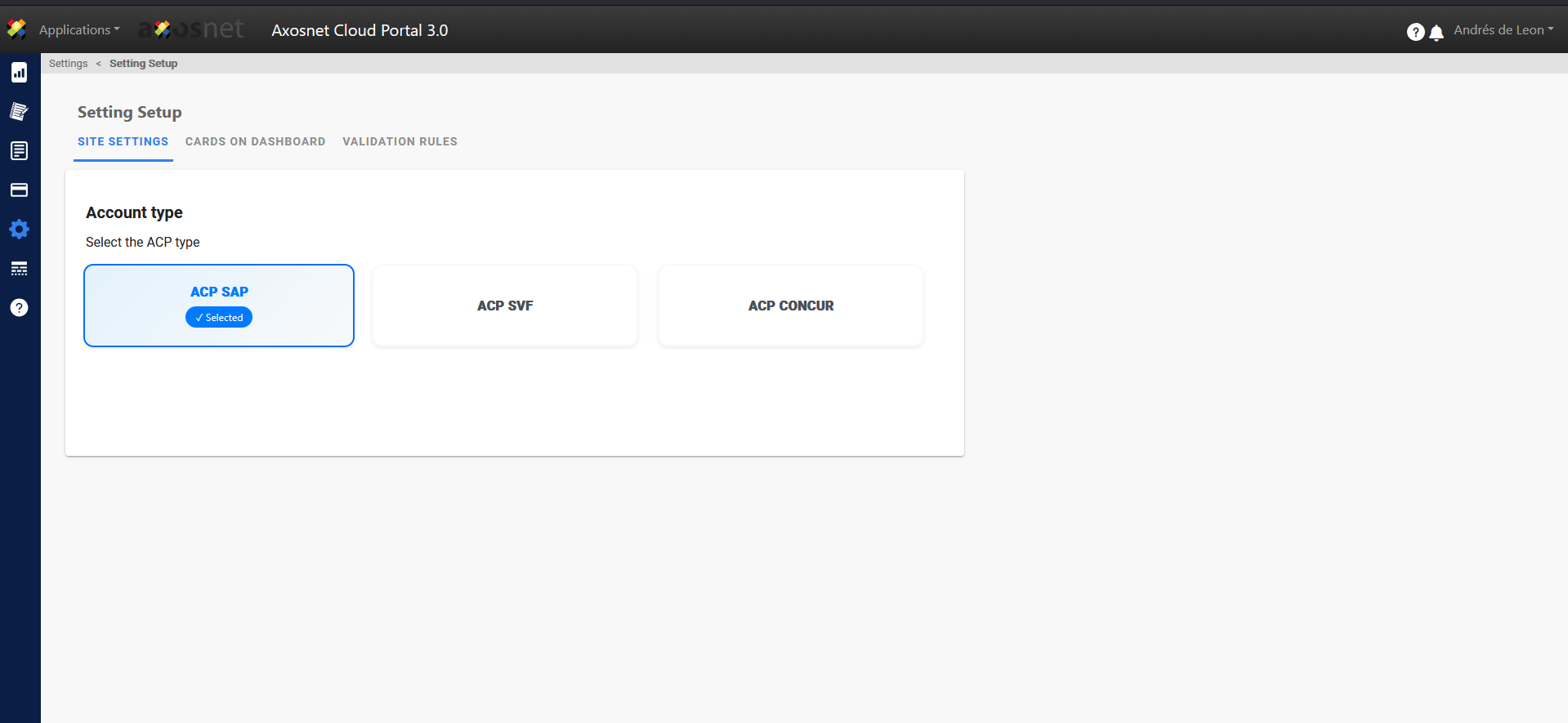 1. Verify that the SAP ACP account type is enabled in the settings.