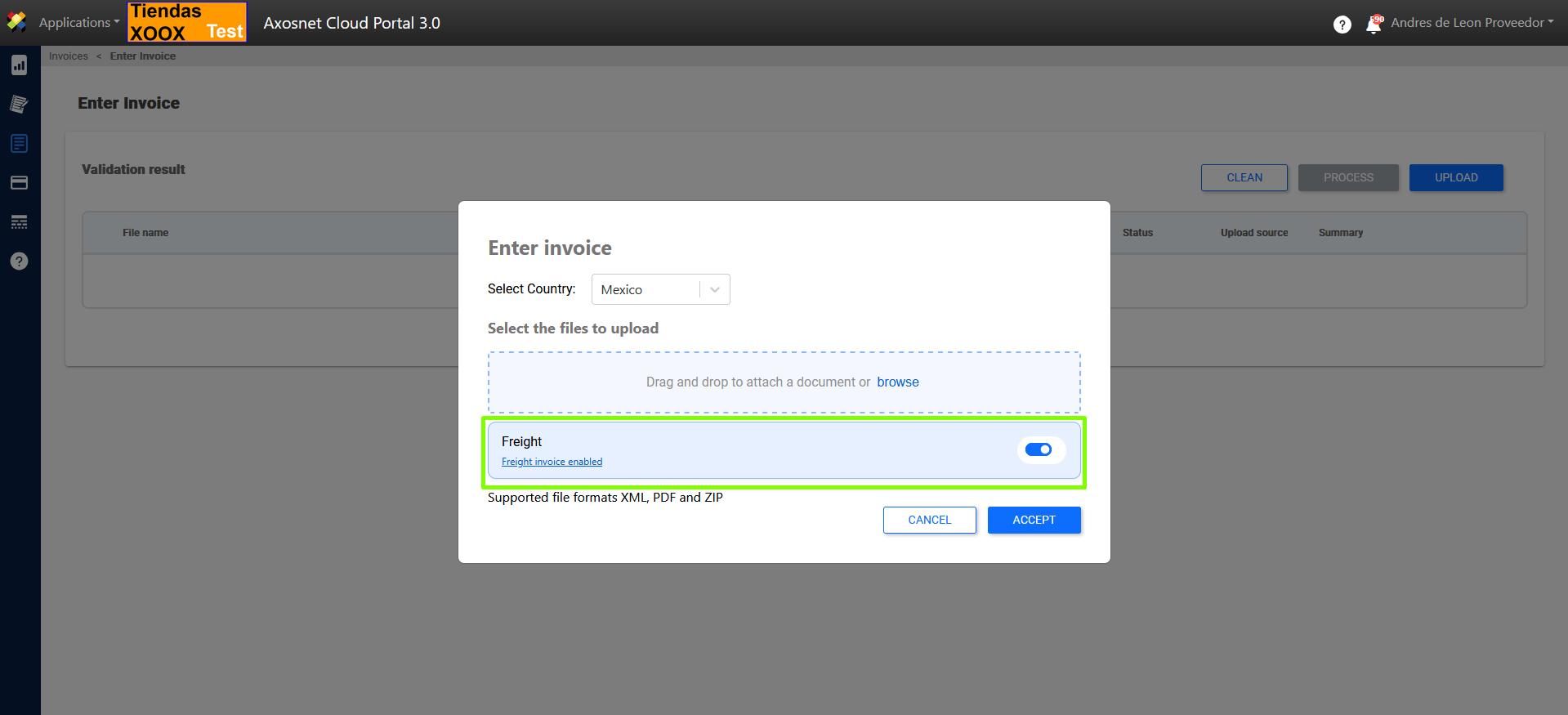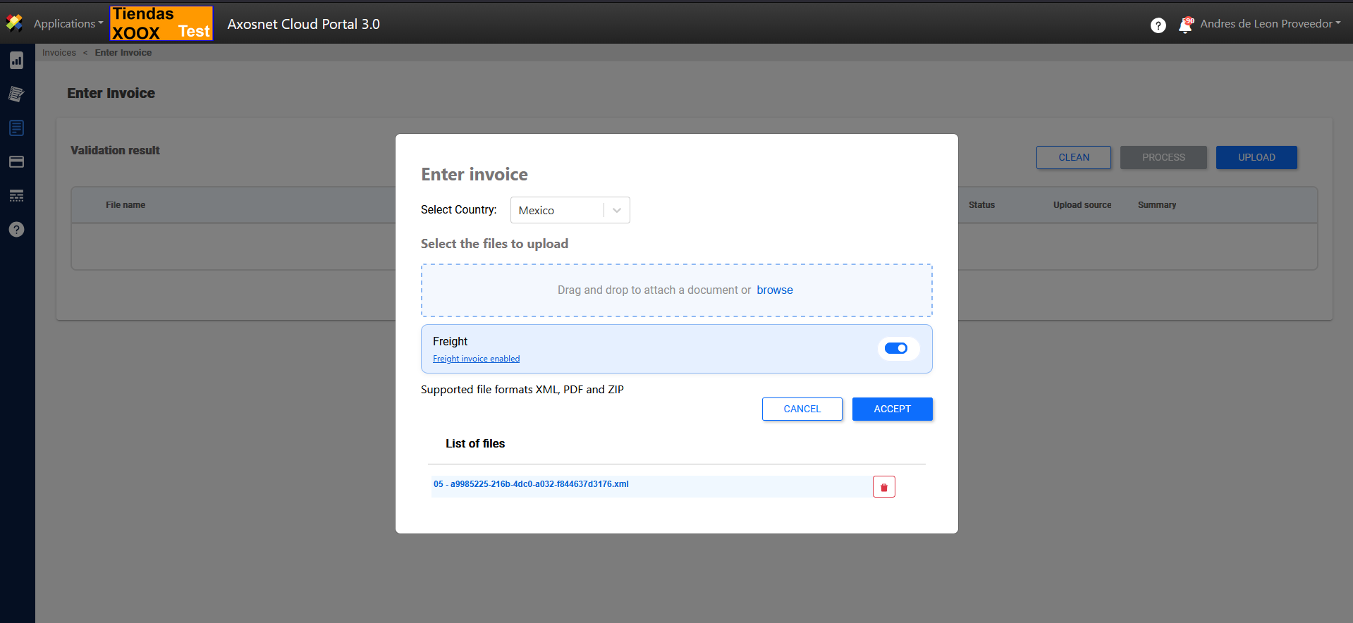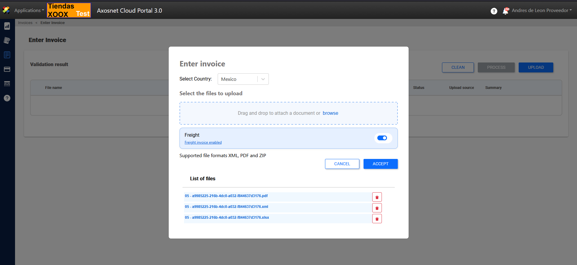 7. To upload the invoice, drag the documents or click “Select” depending on the following scenarios: