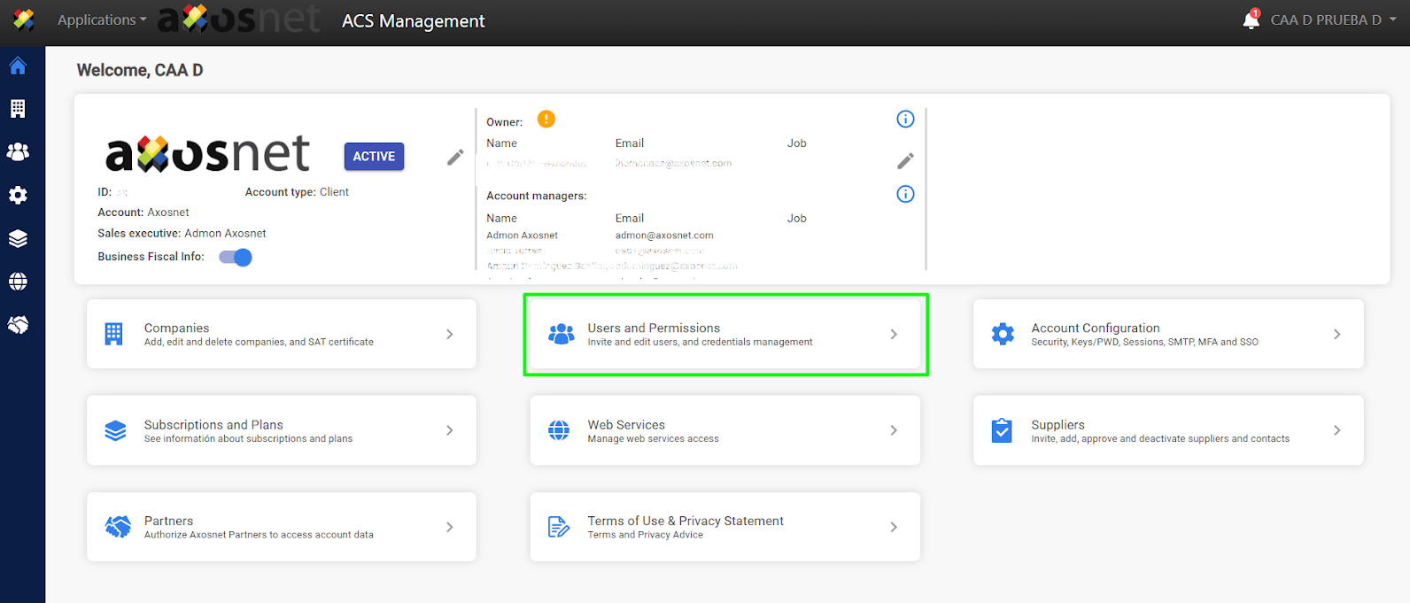 1. In ACS Management click on “Users and Permissions”.