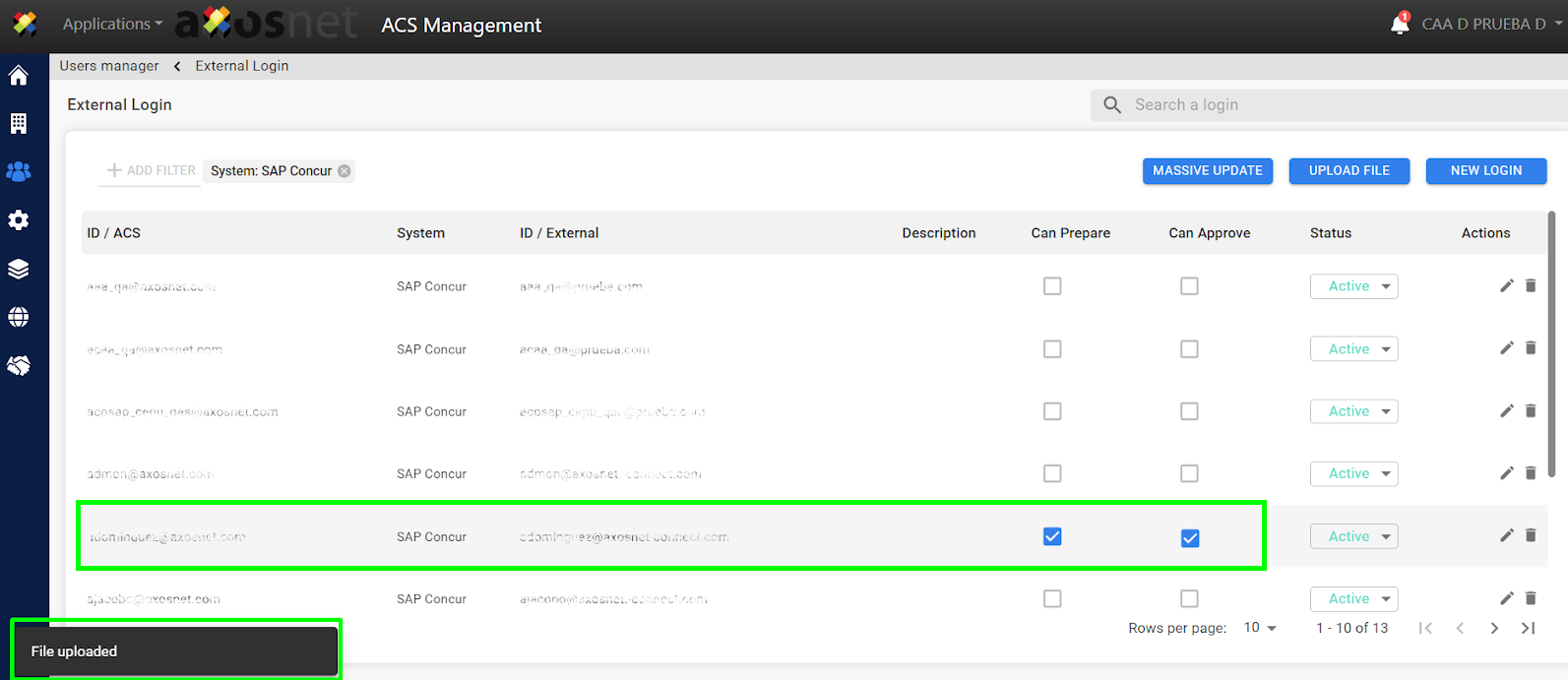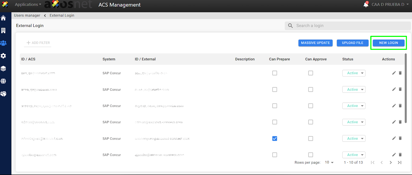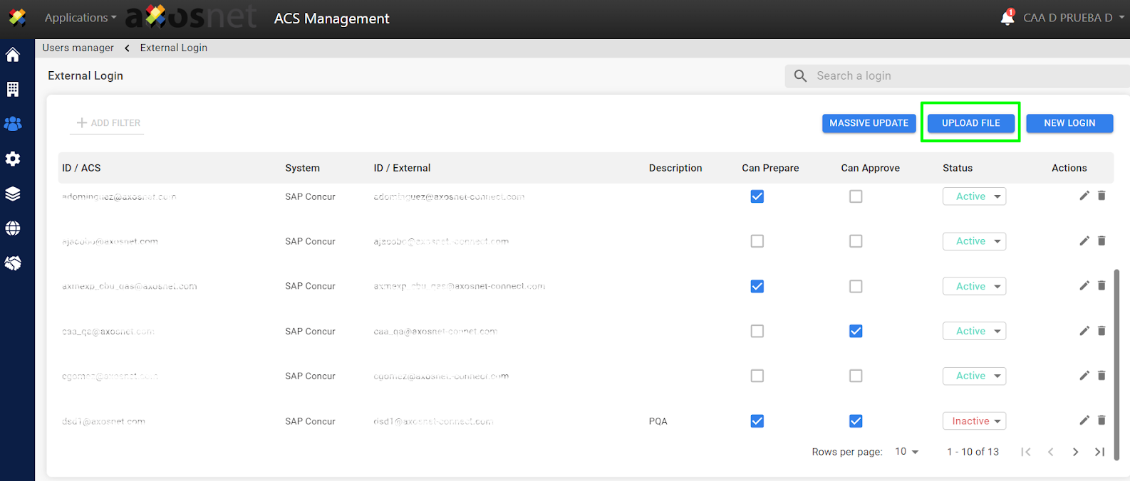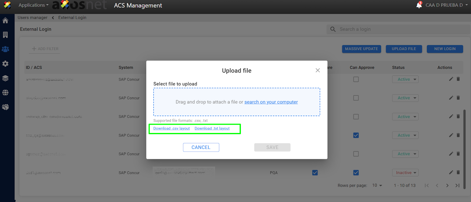 It is also possible to add external logins by uploading a file, to do this follow the steps below: