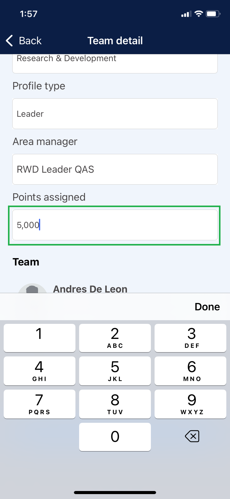 6. Identify the “Assigned Points” field, click on it, and if necessary, modify the amount of points.
