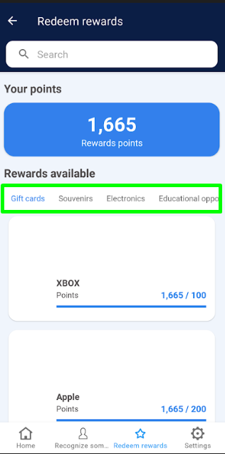 2. From the horizontal menu, select the category of the reward* you wish to redeem.