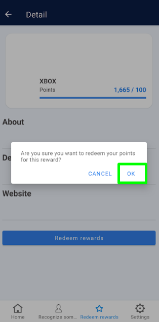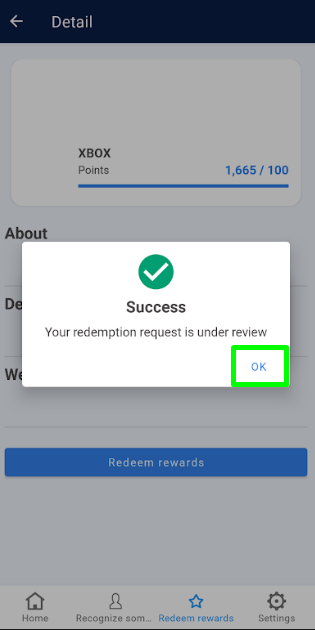 5. Click “OK” on the success message regarding your redemption request.