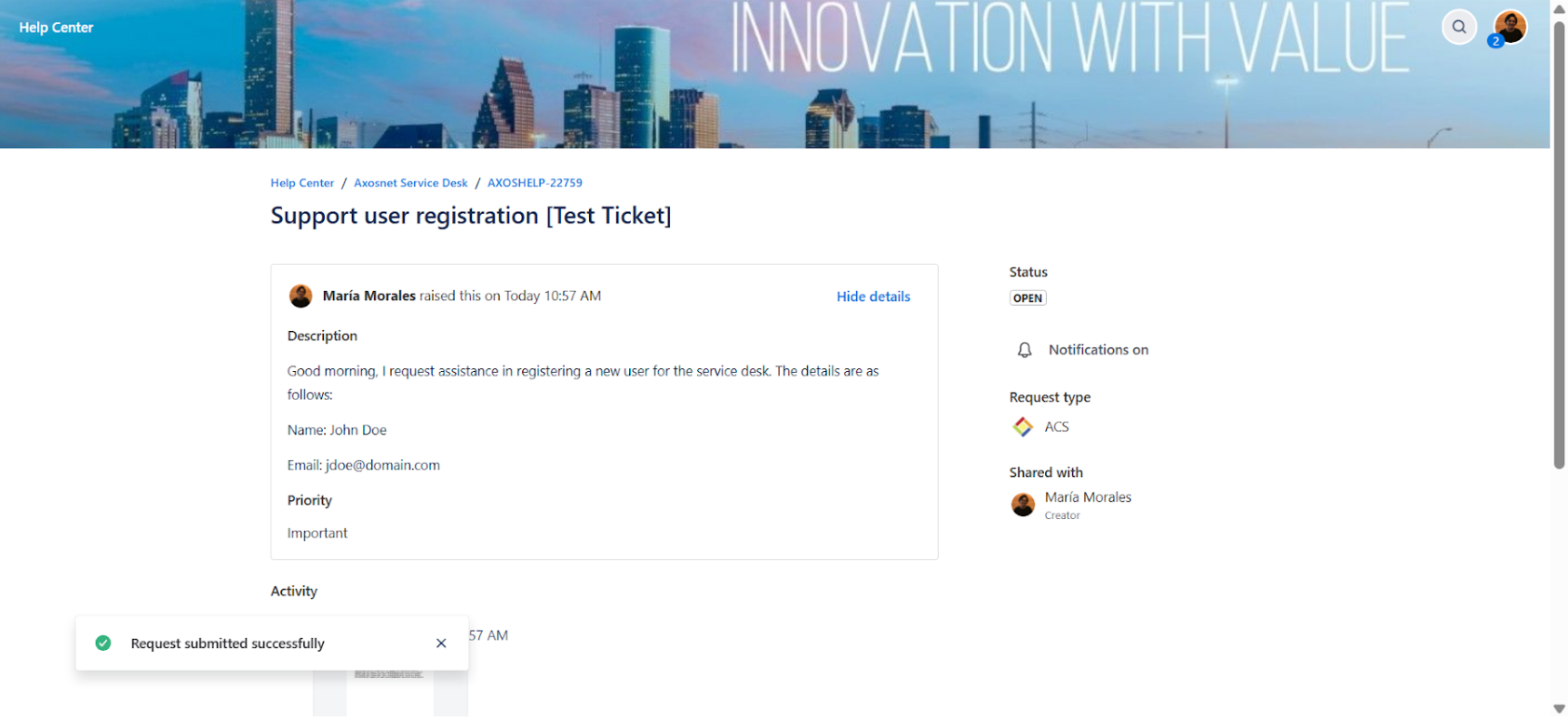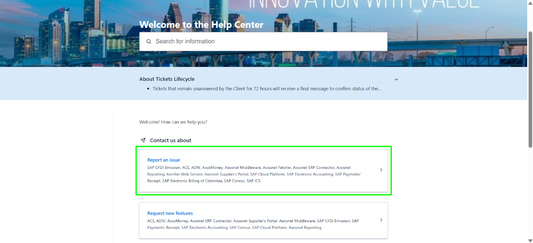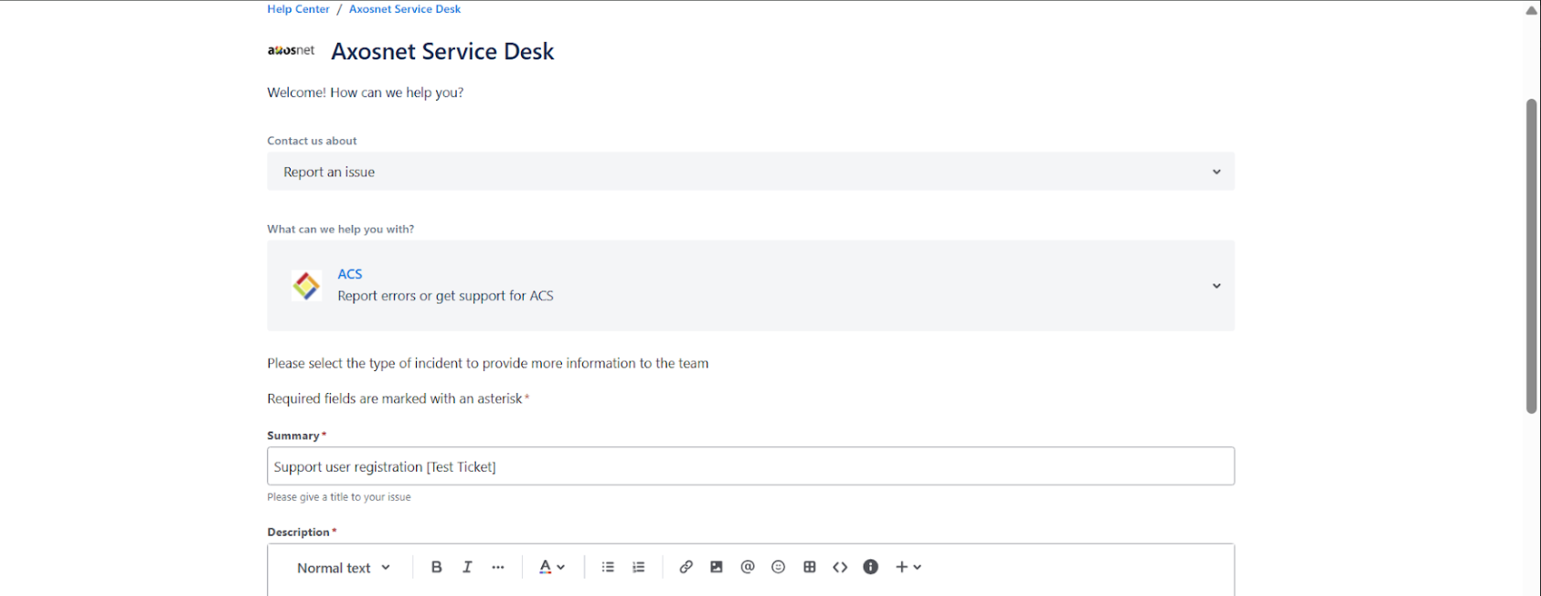 Axosnet provides a portal that is our official channel through which support requests can be submitted.