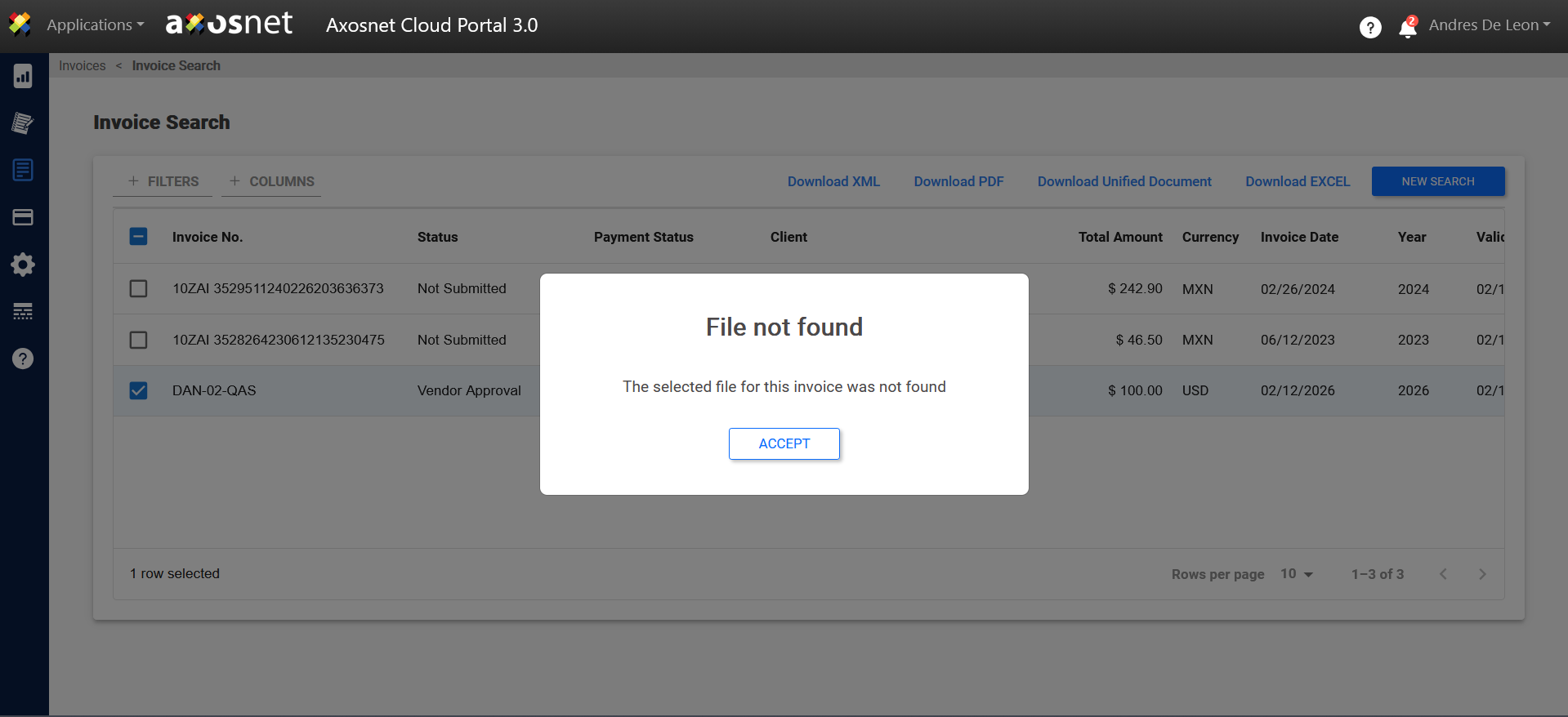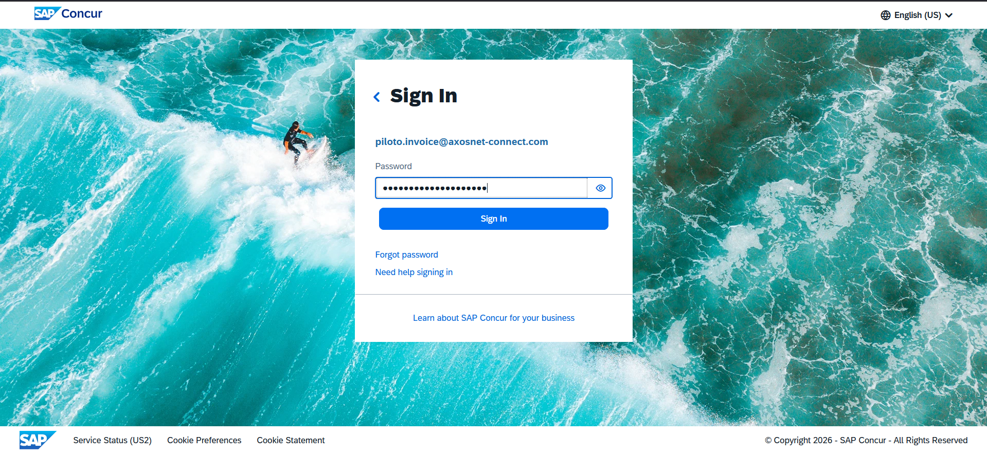 The integration of SAP Concur with Axosnet Cloud Portal (ACP) facilitates the viewing of invoices generated in Concur directly in the ACP invoice entry section. This allows for tracking the status updates of said invoices.