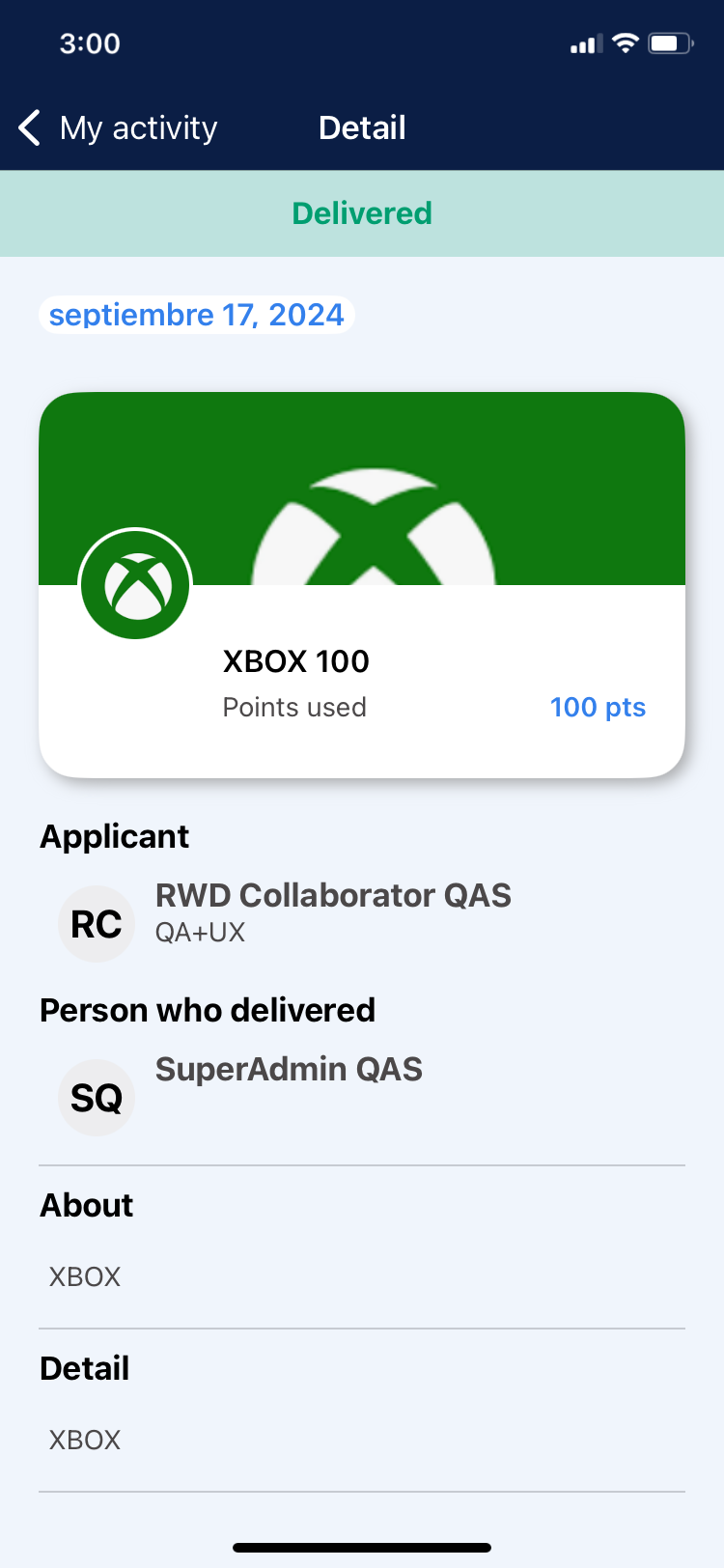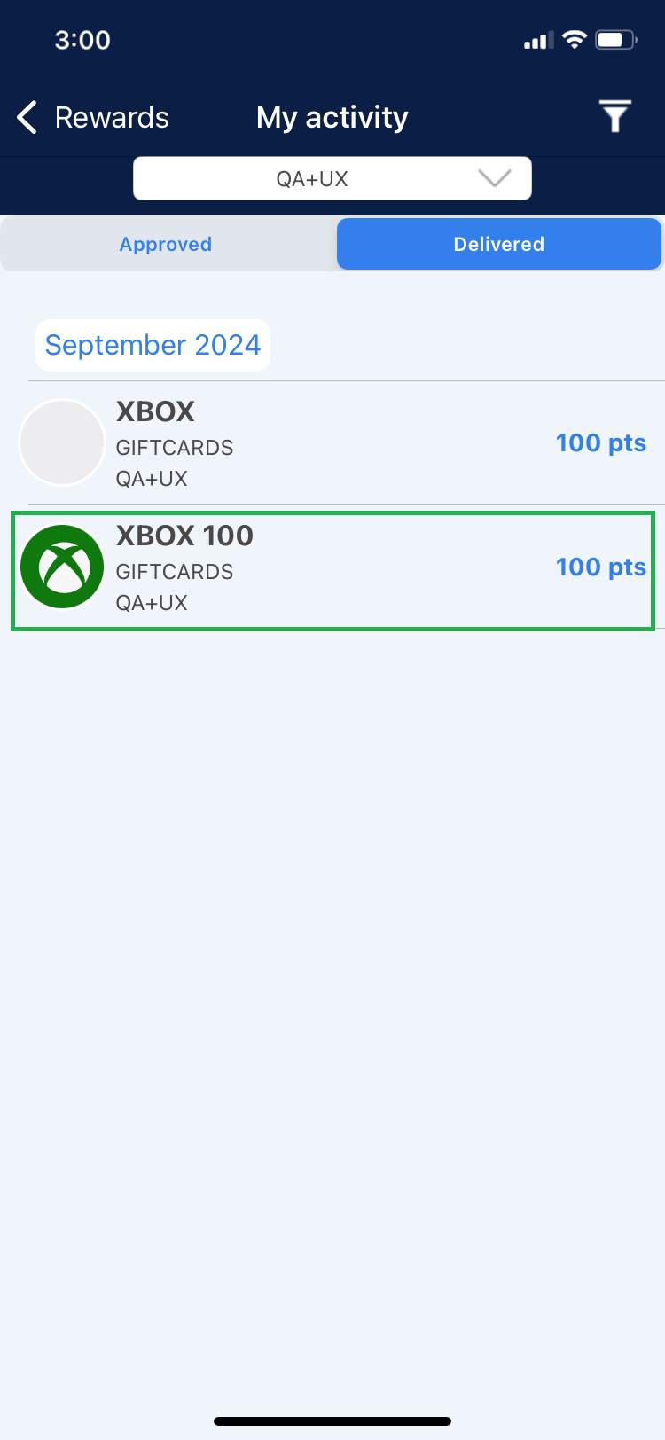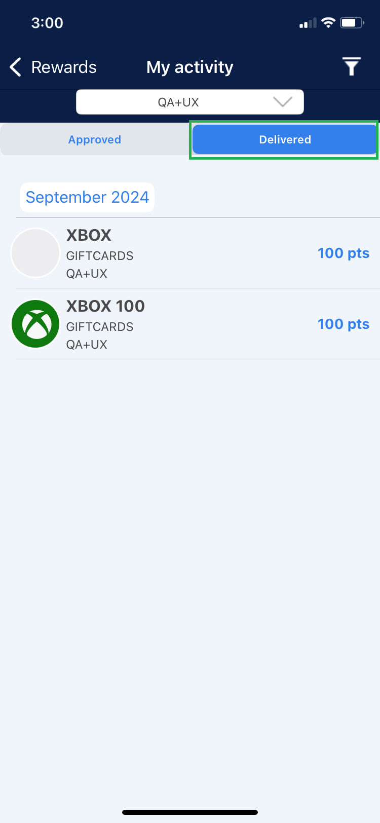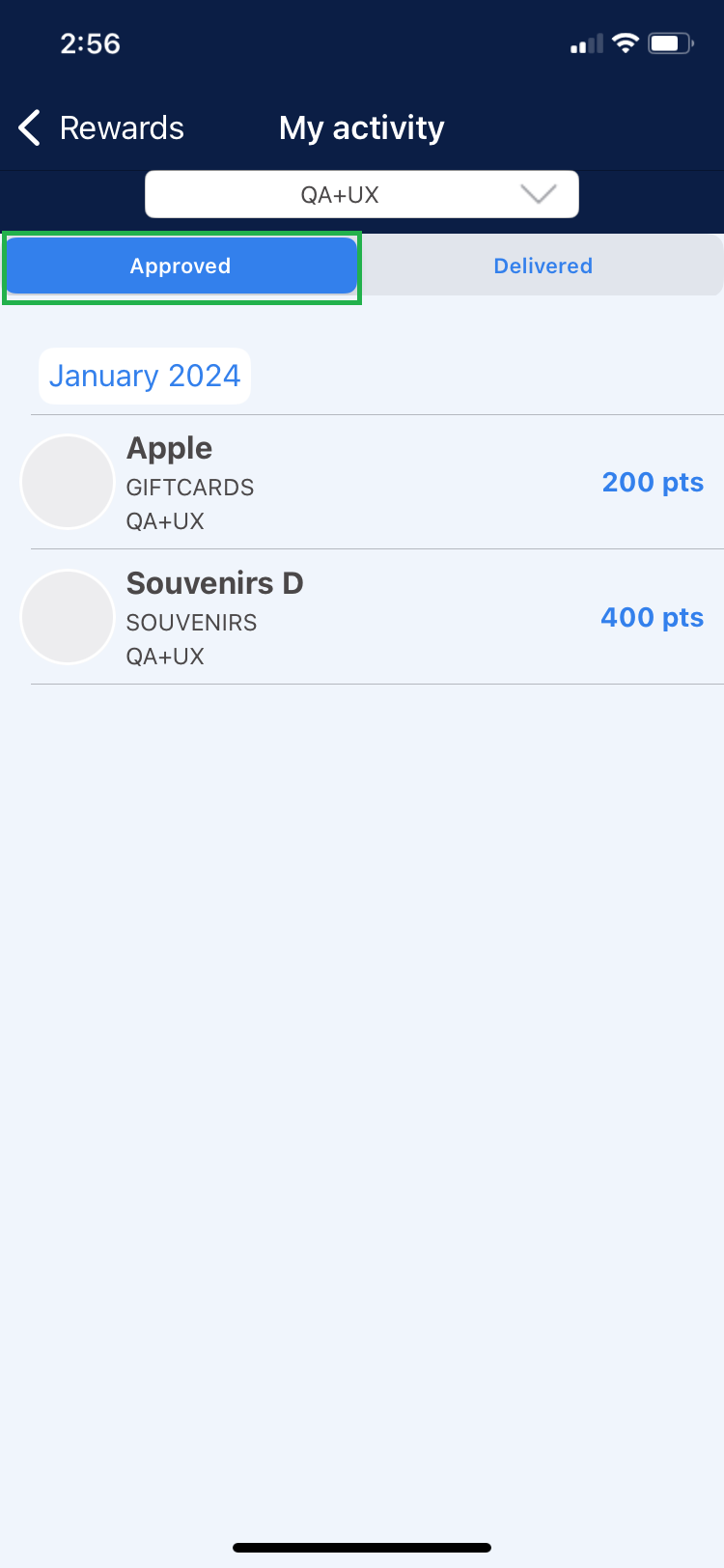This section shows the redeemed rewards that are in “Approved” and “Delivered” status.
