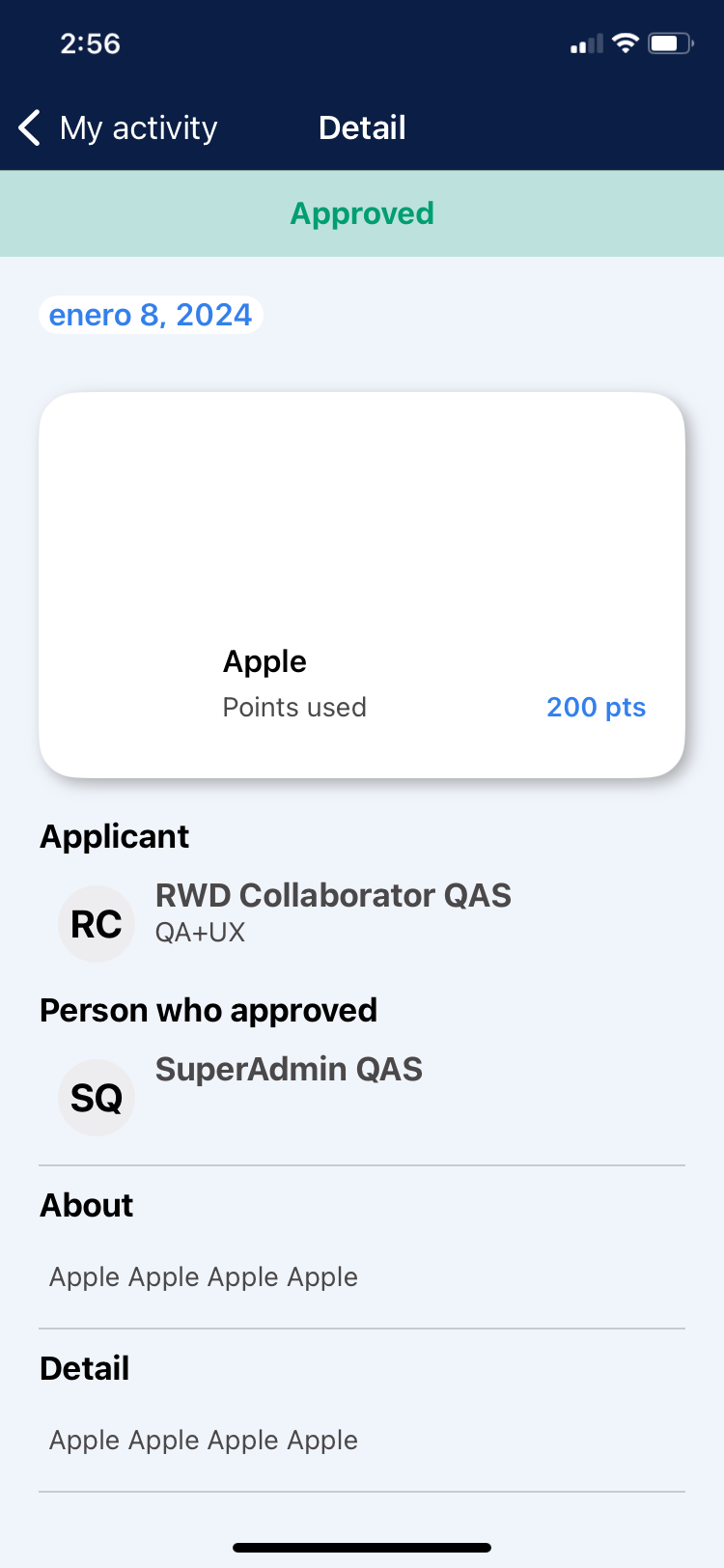 Person who approved: Rewards SuperAdmin username.