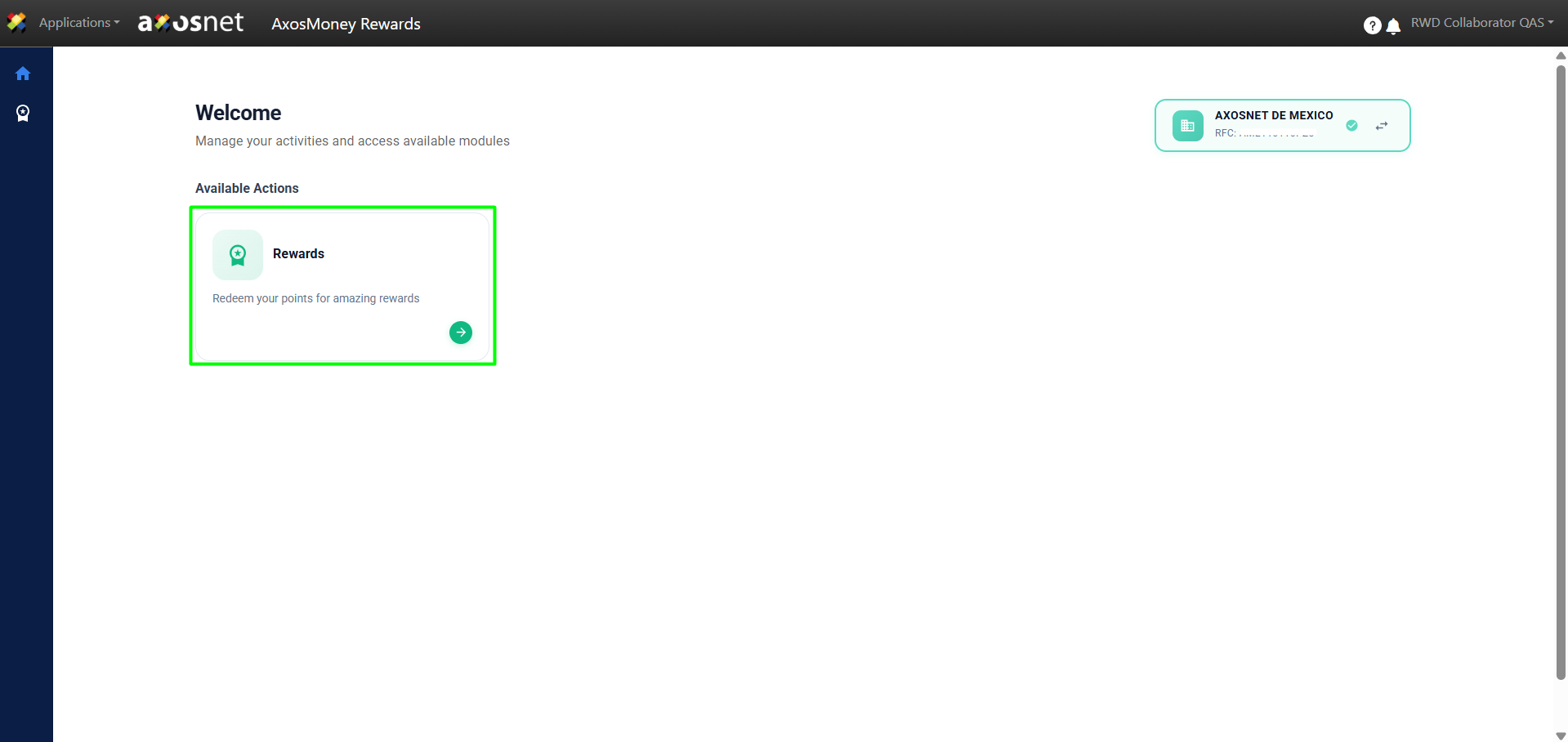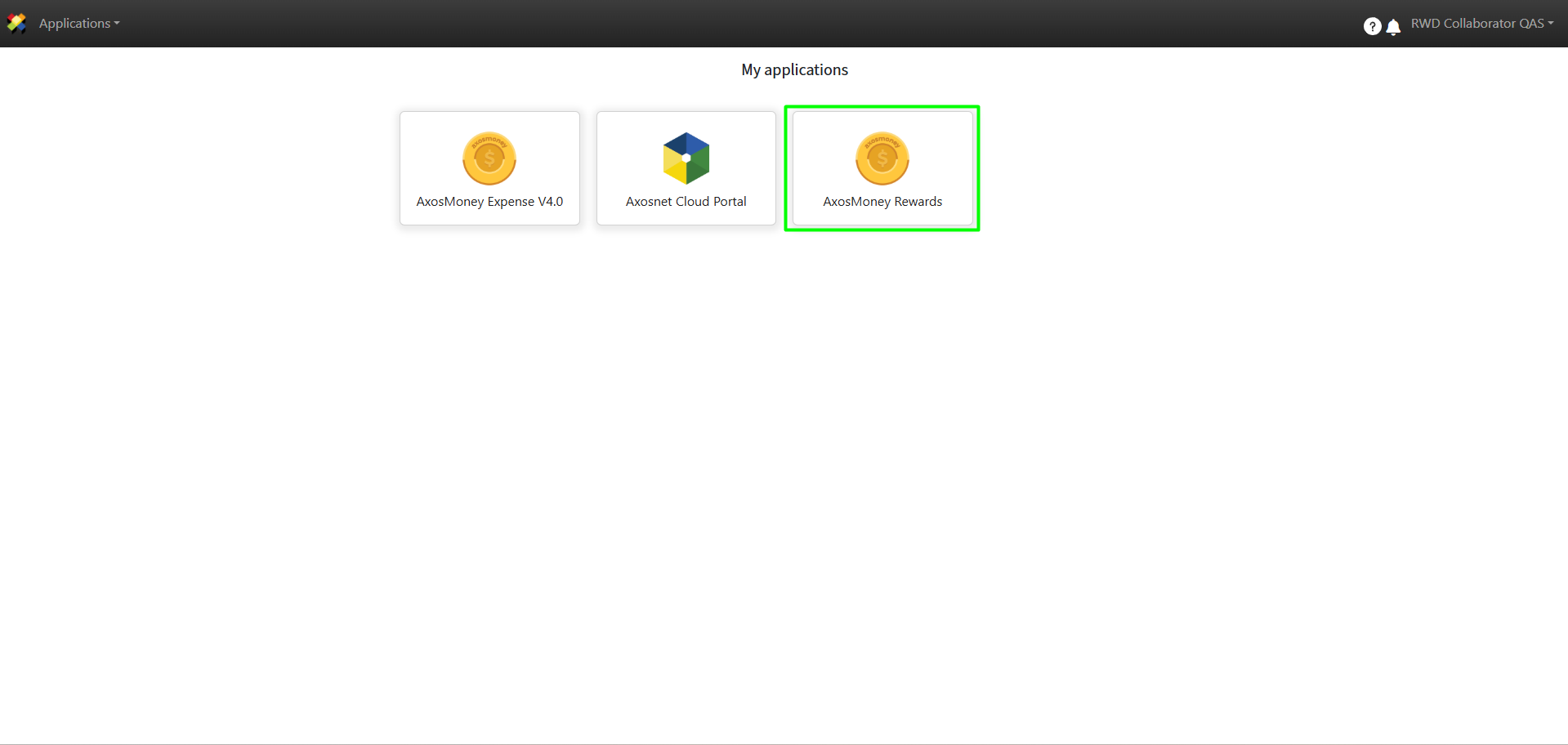 1. Access ACS Management and select the AxosMoney Rewards application.