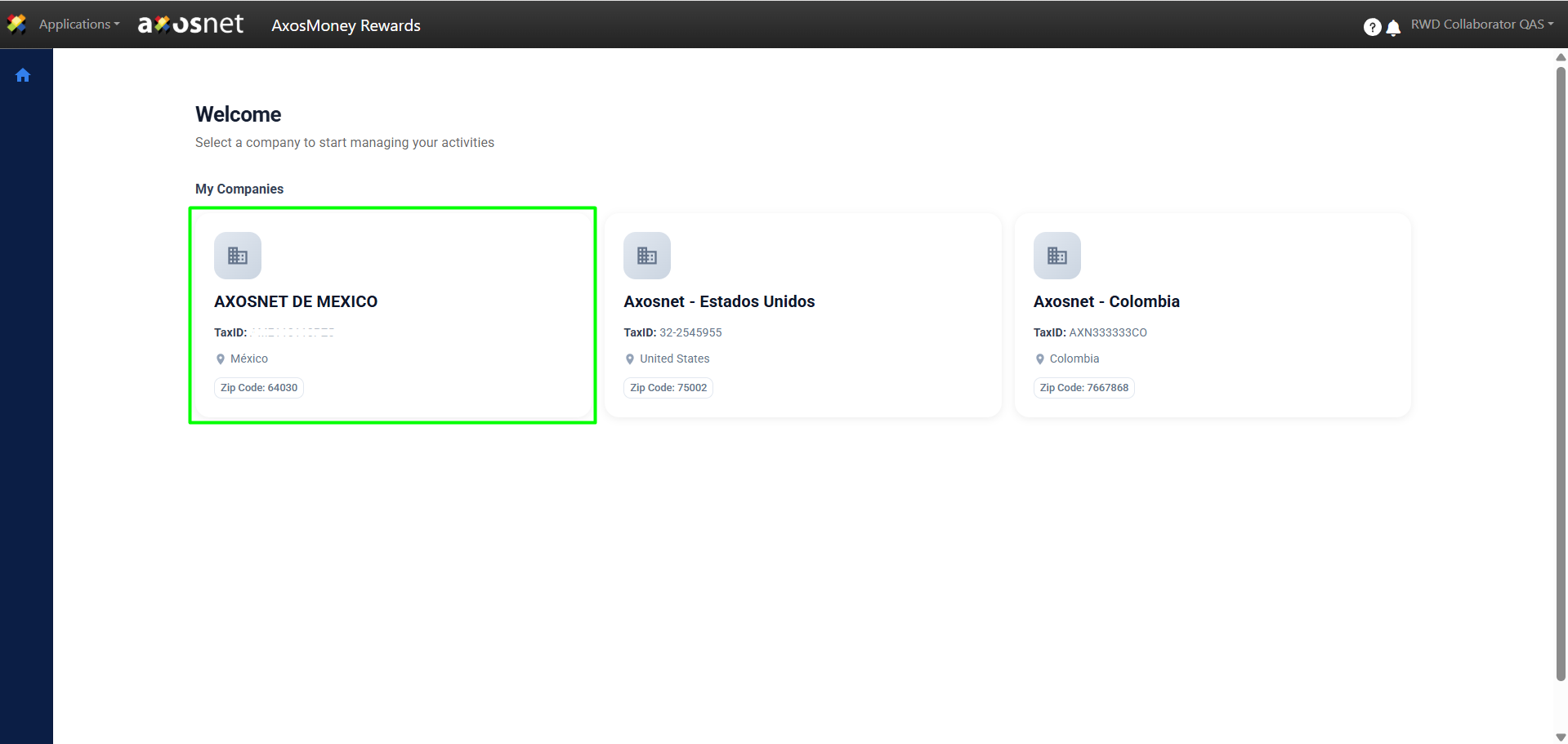 2. Select the company the collaborator belongs to.