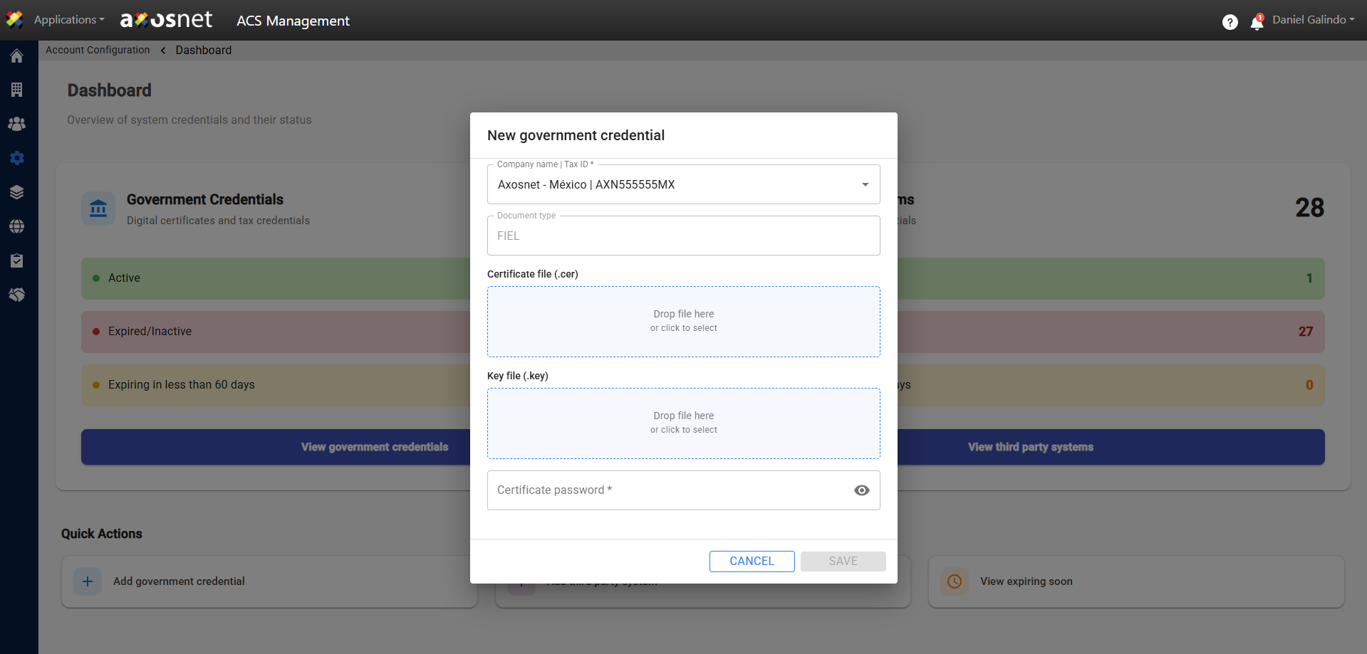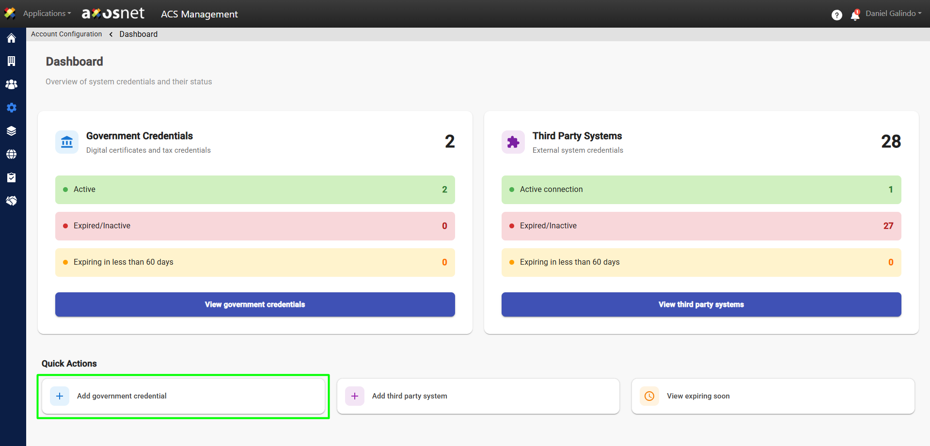 Using this action, you can quickly create government credentials.