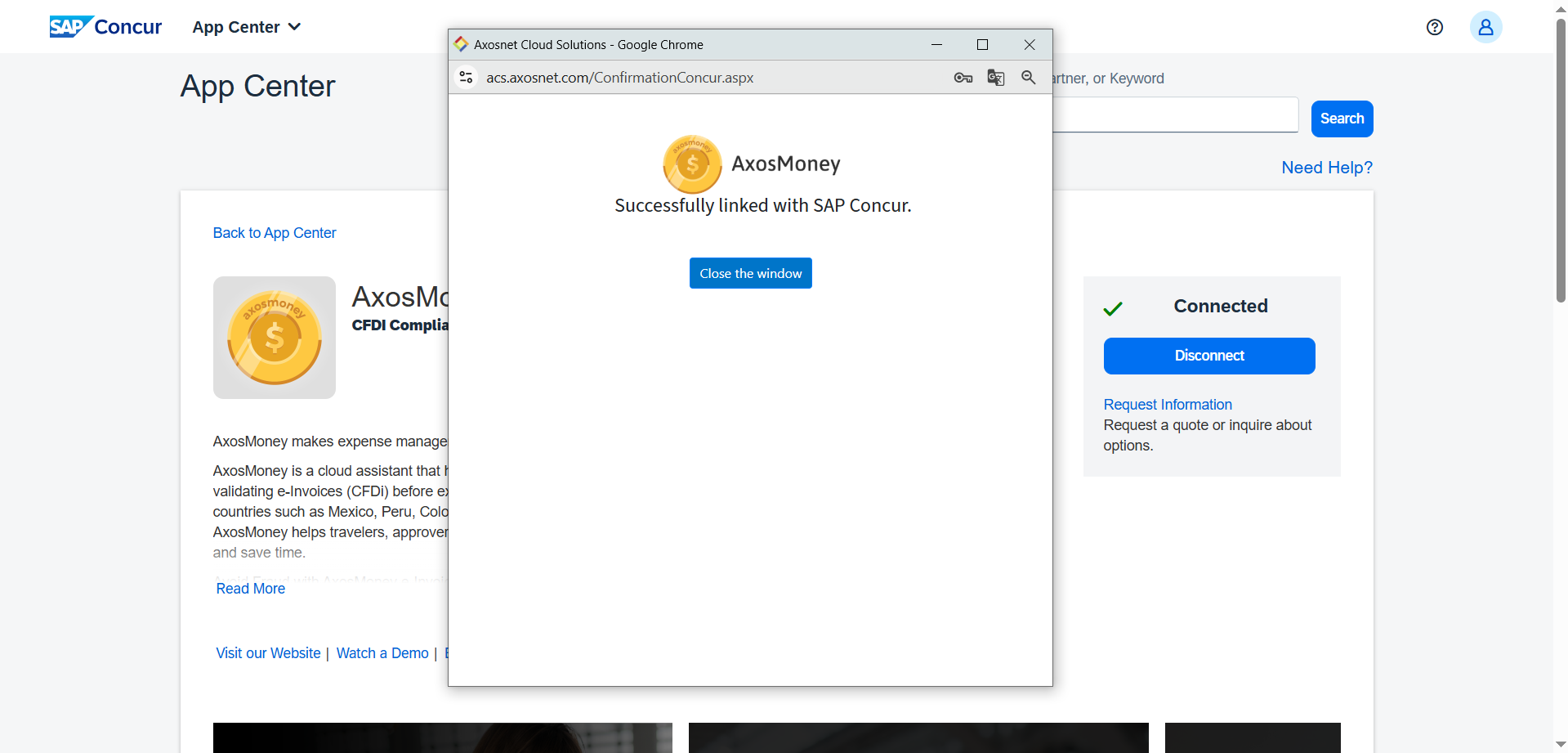 You have connected your account from SAP Concur successfully.