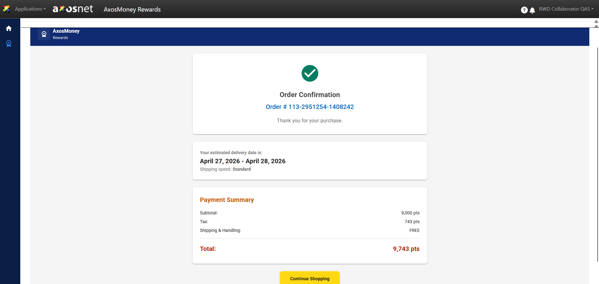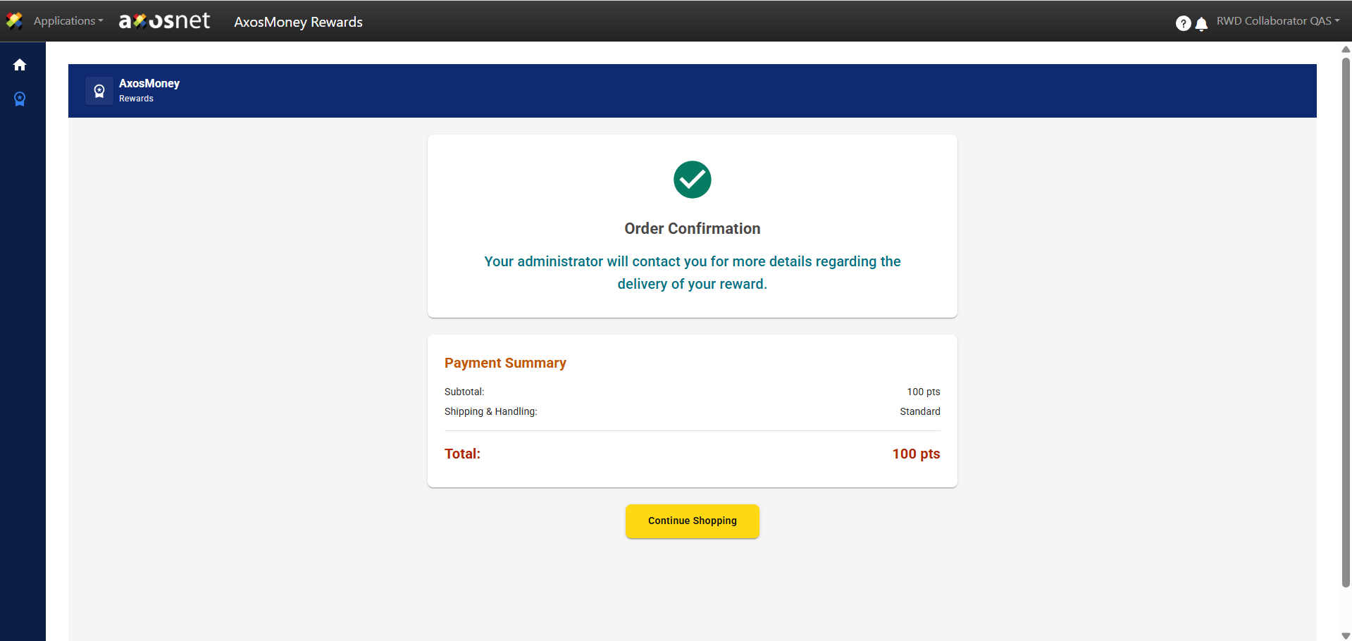 1. Access ACS Management and select the AxosMoney Rewards application.