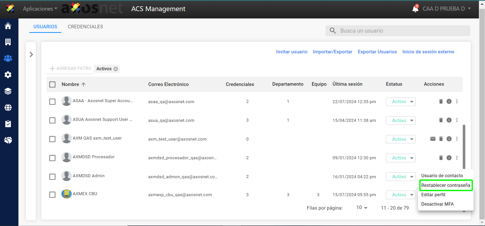 Esta sección detalla el proceso para que un administrador de cuenta restablezca la contraseña del acceso a ACS de un usuario.