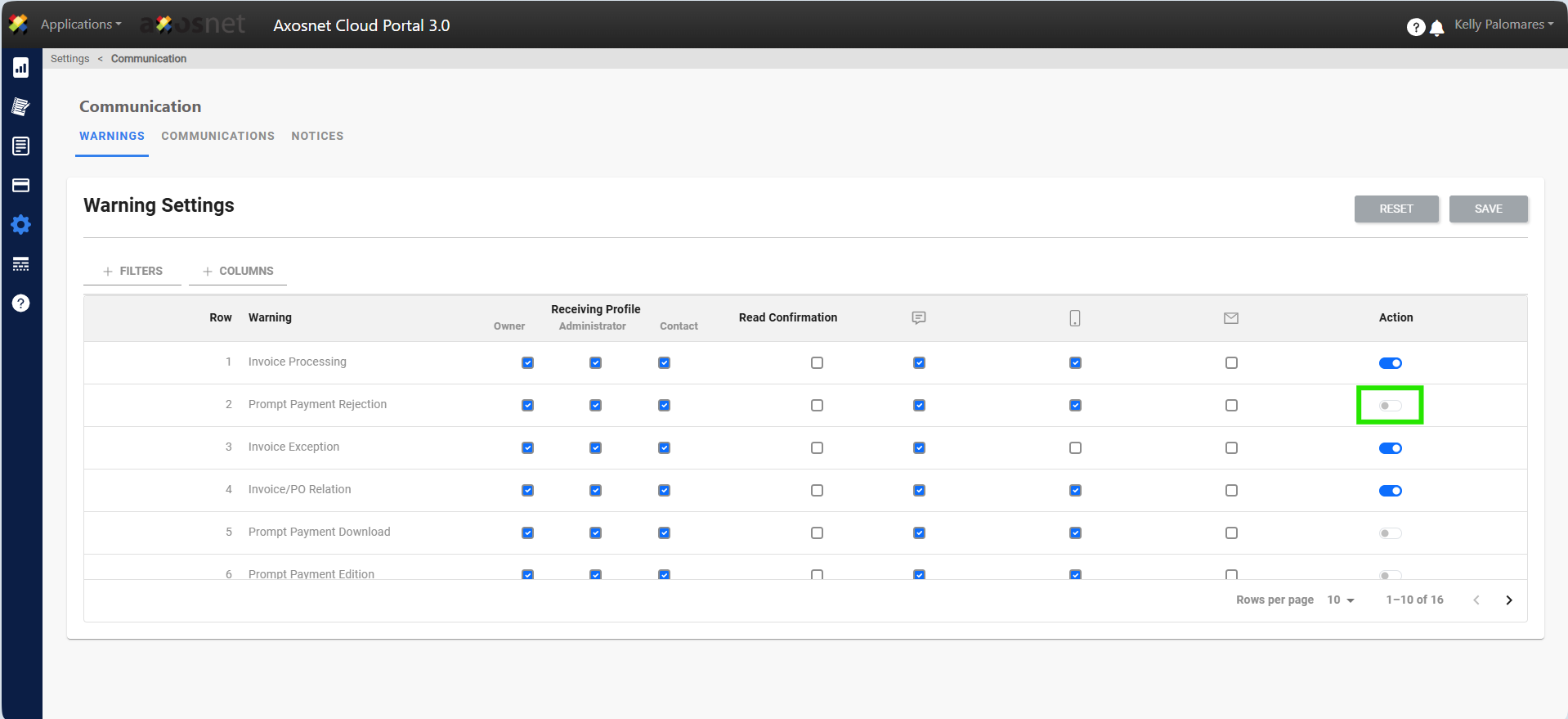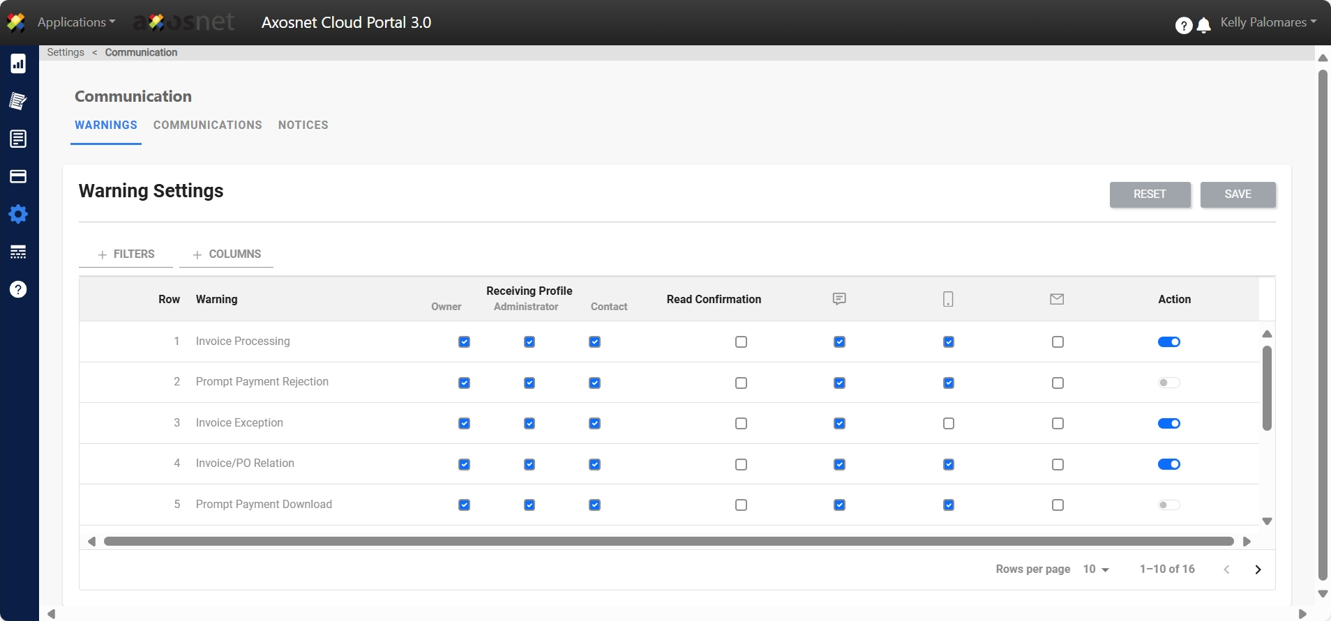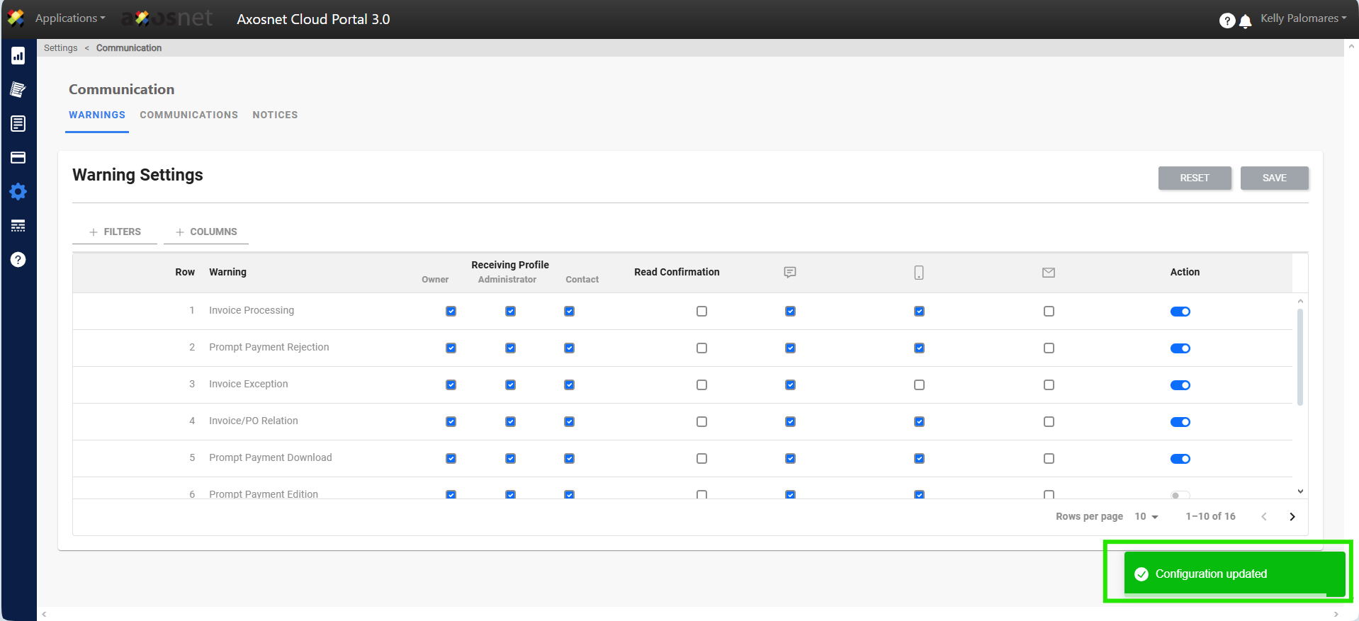 For example, to configure the supplier to receive a notification (warning) when the customer returns an invoice with an exception, follow these steps: