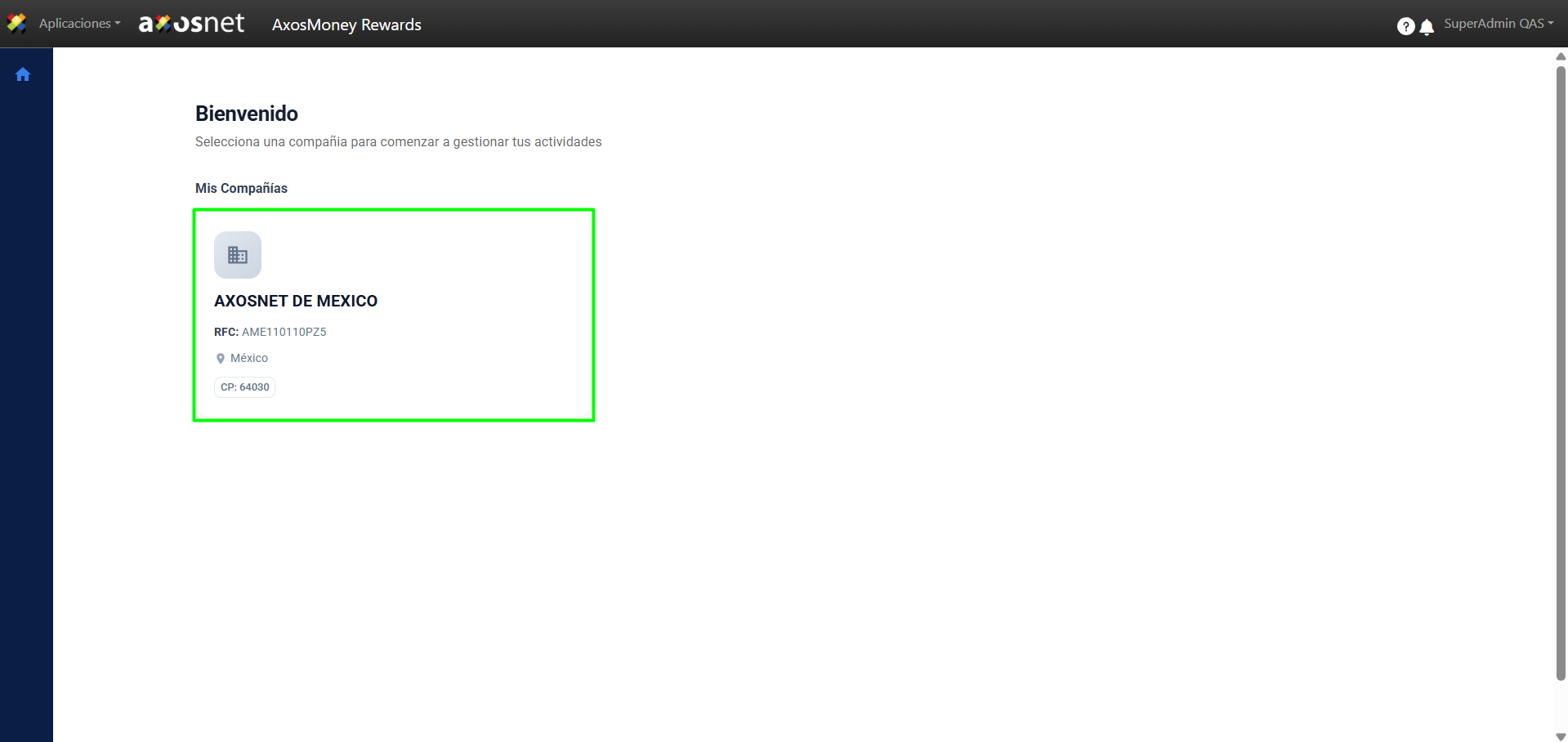 1. Ingrese a ACS y haga clic sobre AxosMoney Rewards.