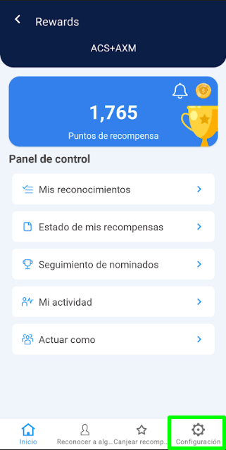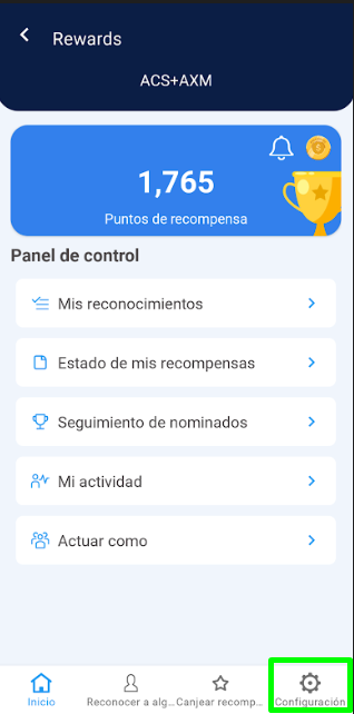 1. Hacer clic en la opción “Configuración” que se encuentra en el menú inferior.
