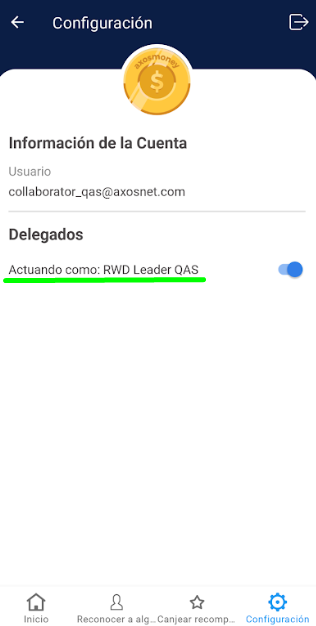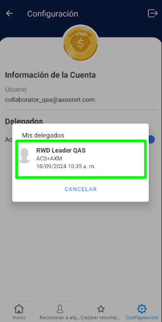 4. Después de seleccionar el líder, en el apartado “Delegados” verá el texto que dice “Actuando como” más el nombre del usuario que está supliendo.