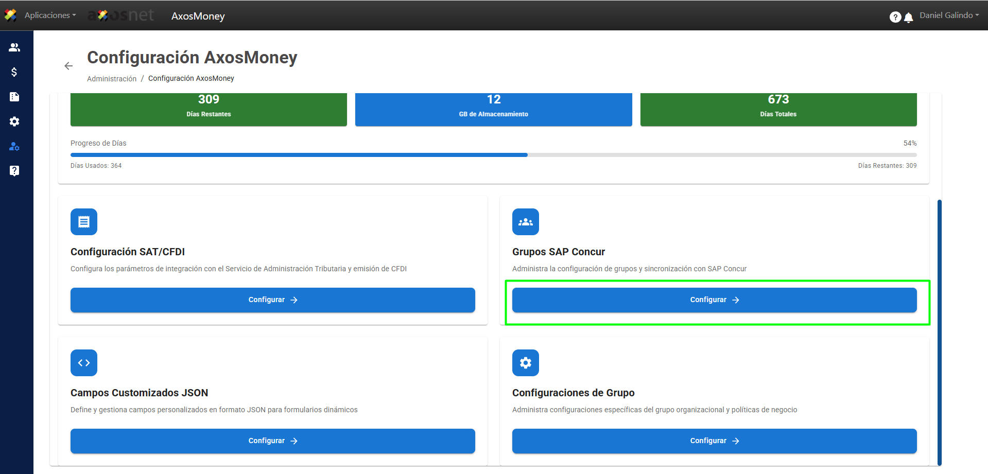 2. En la sección Grupos SAP Concur, haga clic en Configurar.