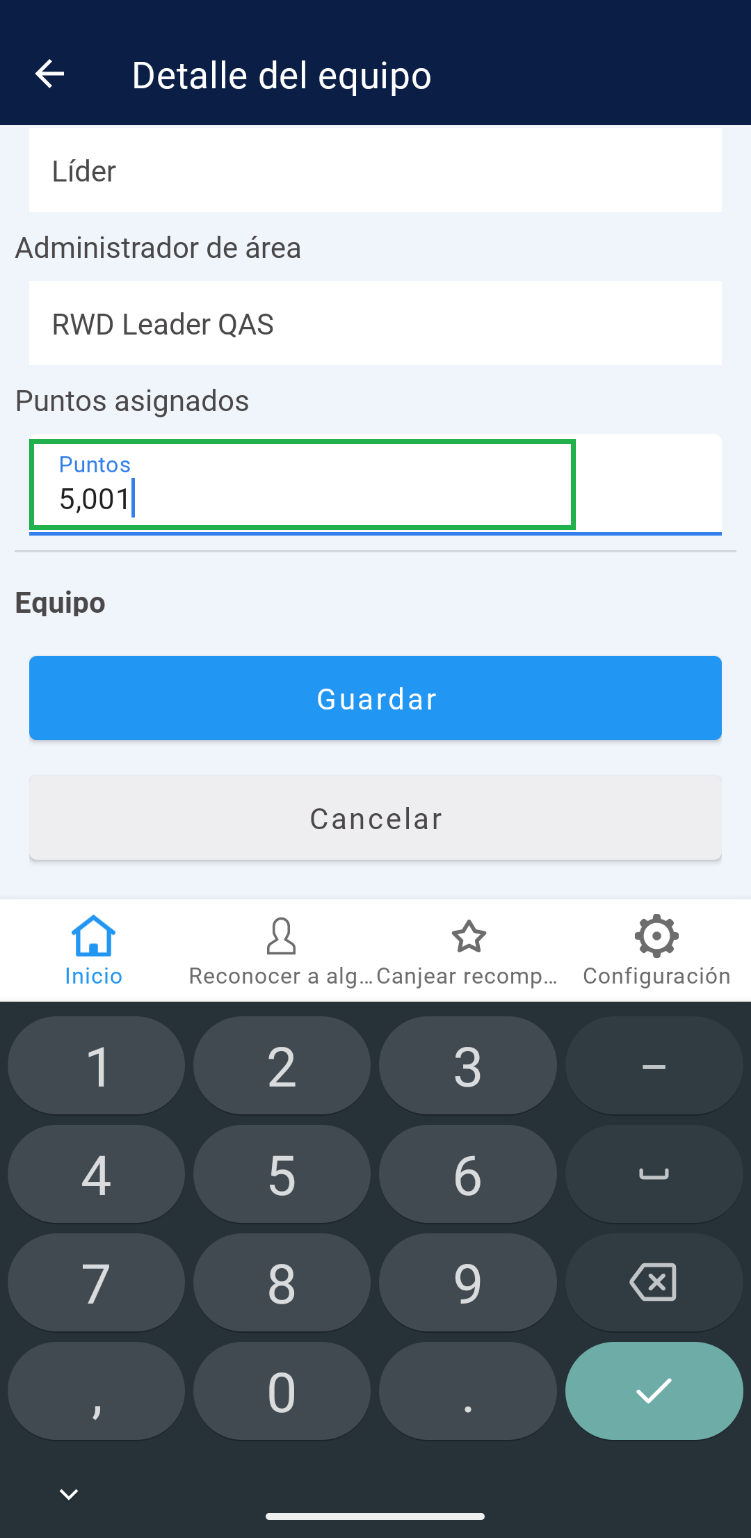 6. Identifique el campo “Puntos asignados”, haga clic sobre él y si lo requiere, modifique la cantidad de puntos.