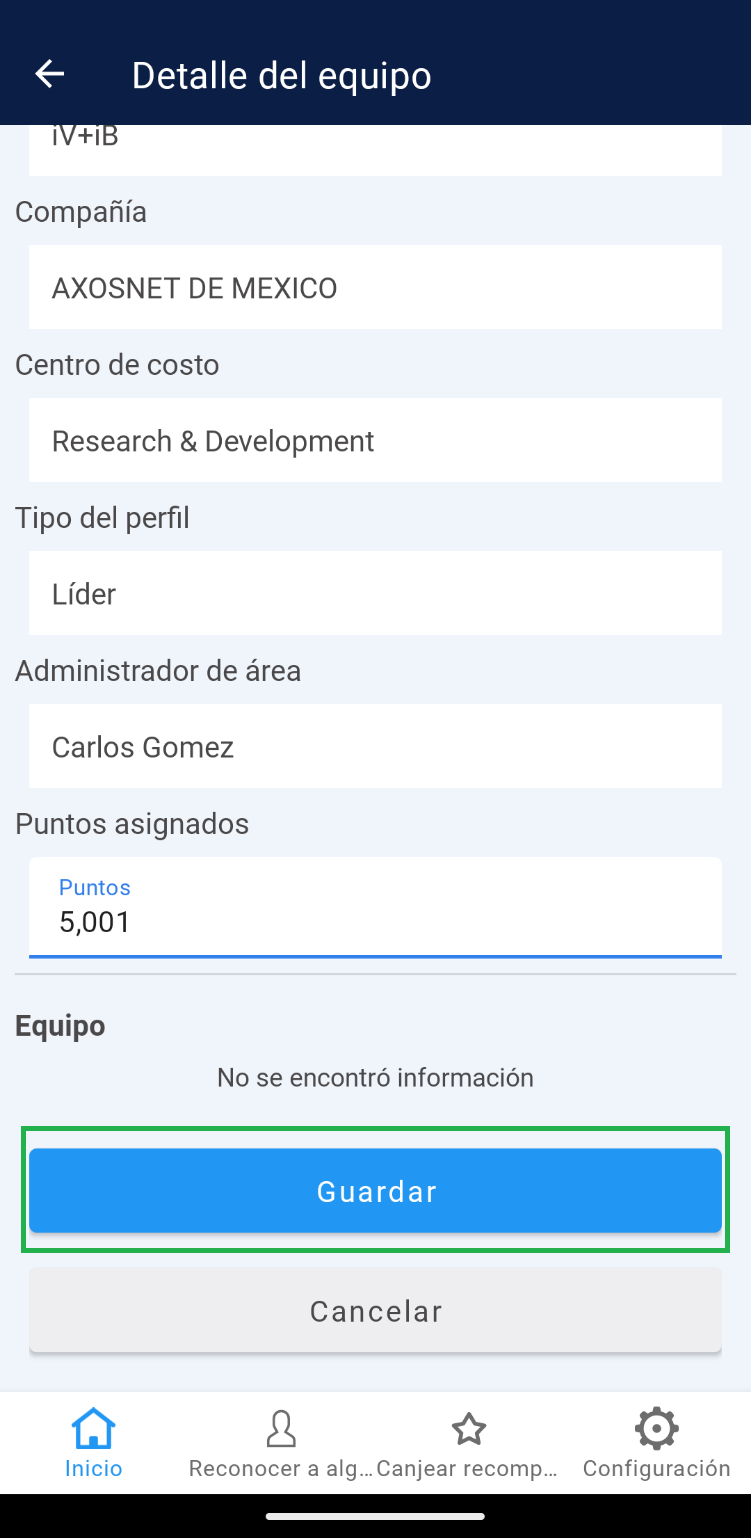 7. Finalmente, haga clic sobre el botón “Guardar” para actualizar los cambios del equipo.