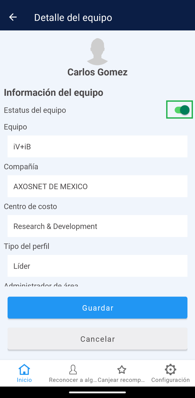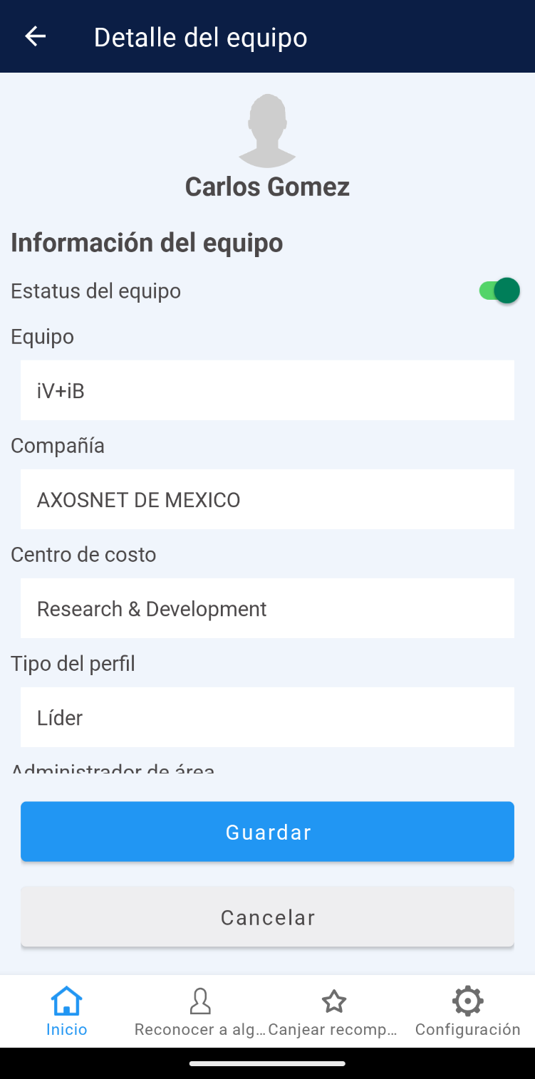 4. Podrá identificar toda la información detallada del equipo, así como a los colaboradores que pertenecen a él.