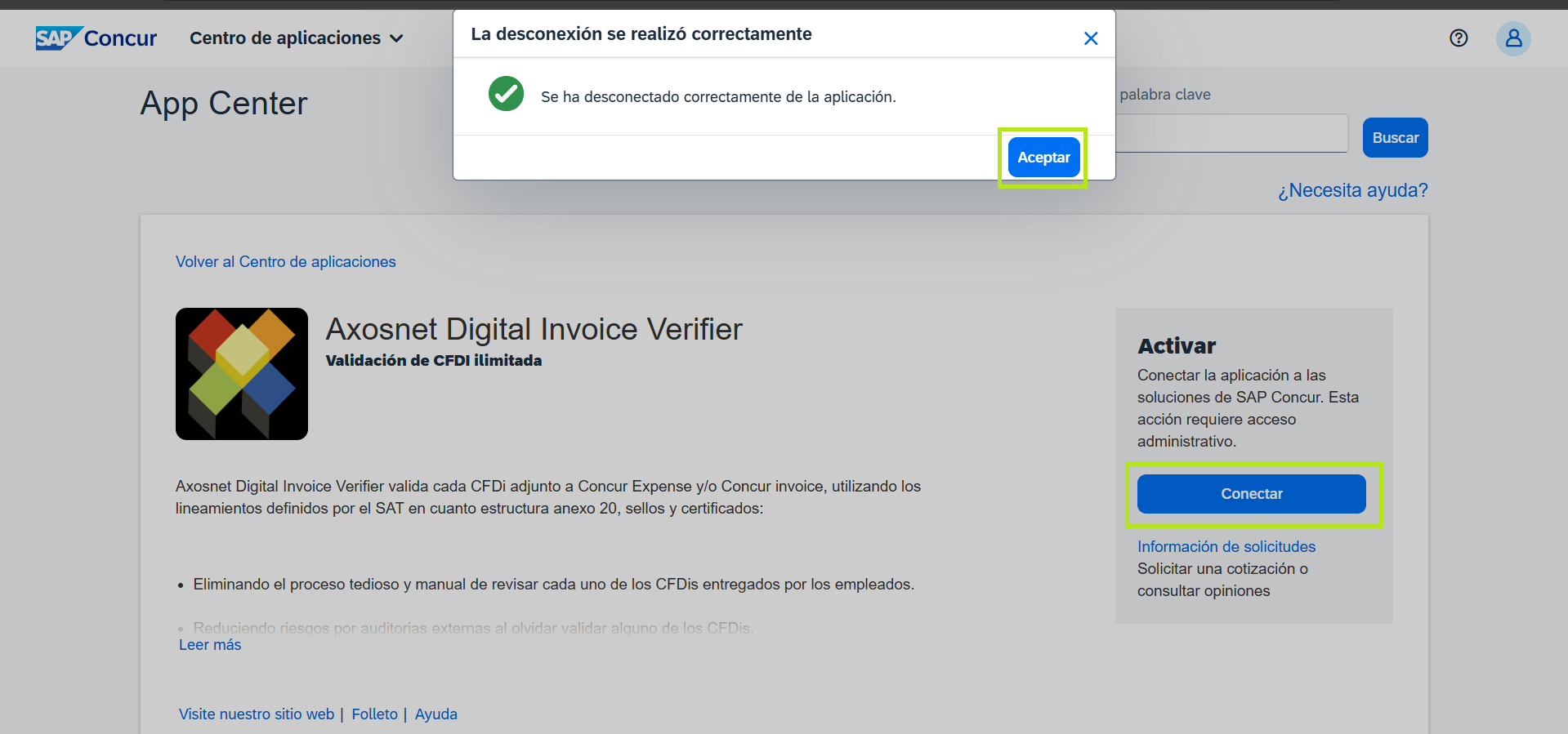 6. Para desvincularse, haga clic en el botón “Desconectar”.
