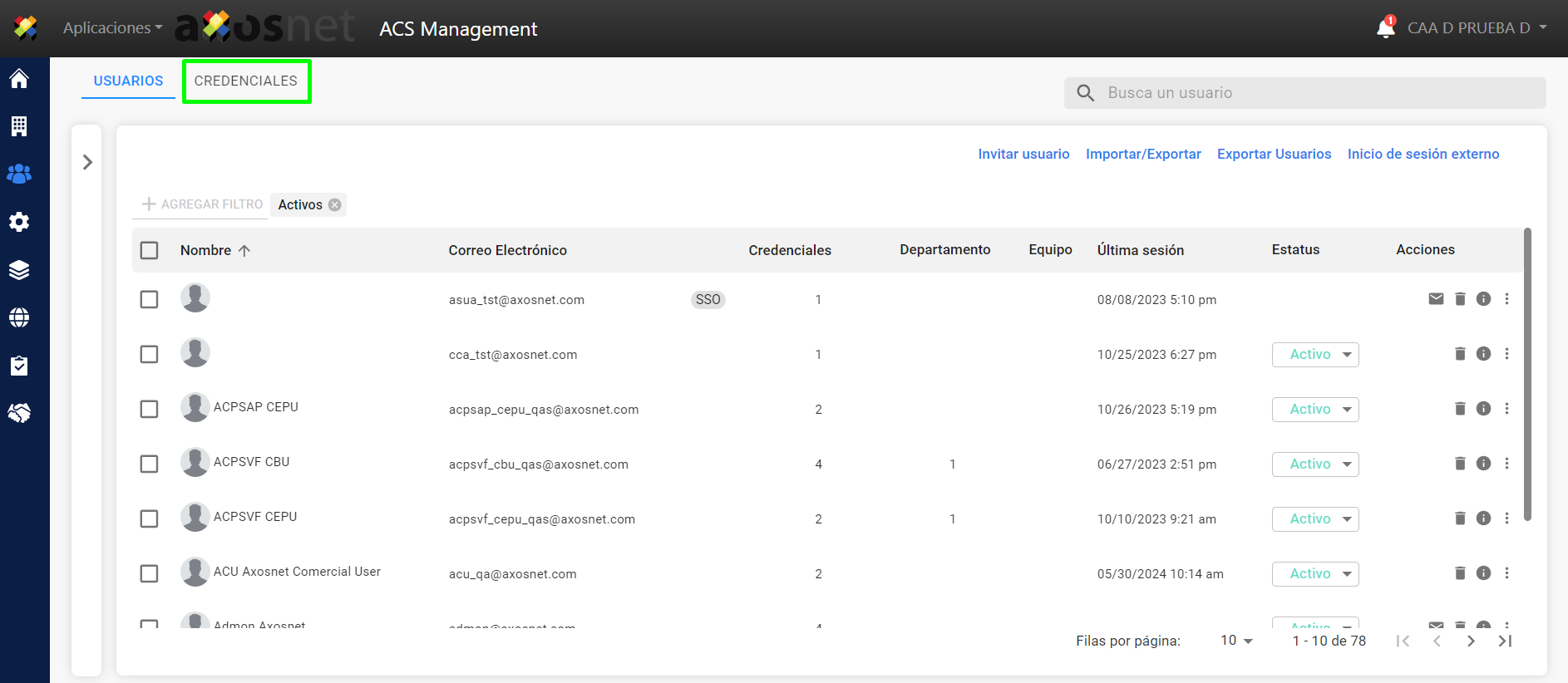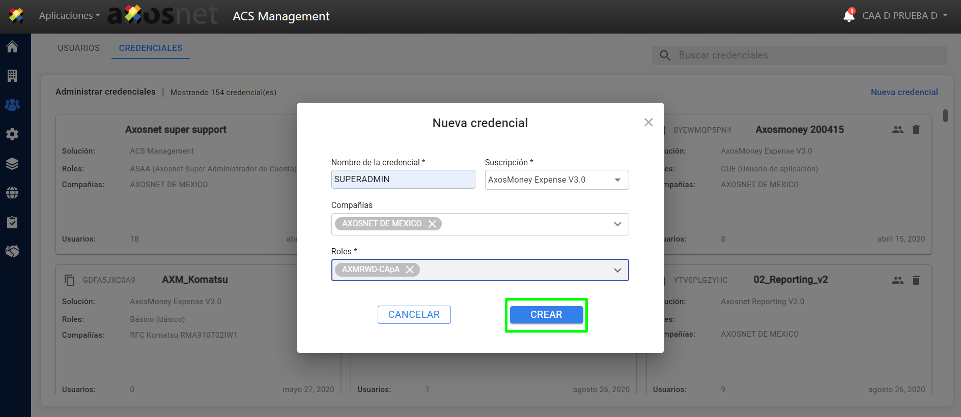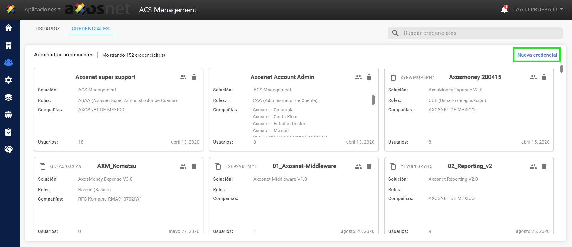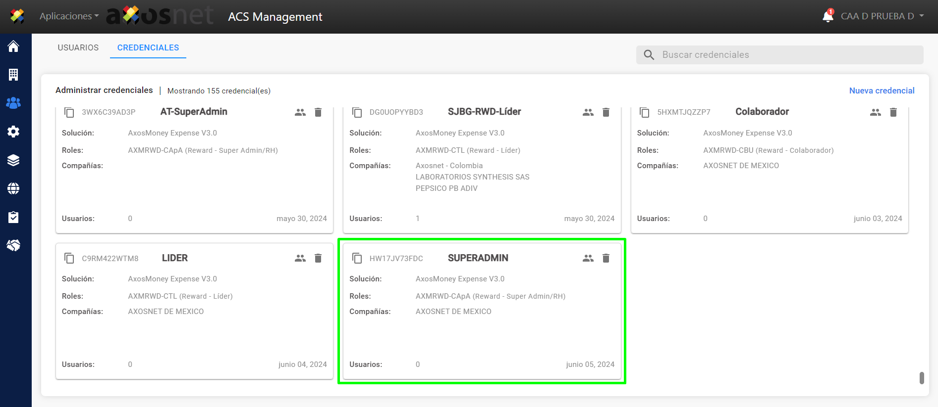 Nota: El rol que le corresponde a la credencial colaborador es :CApA
