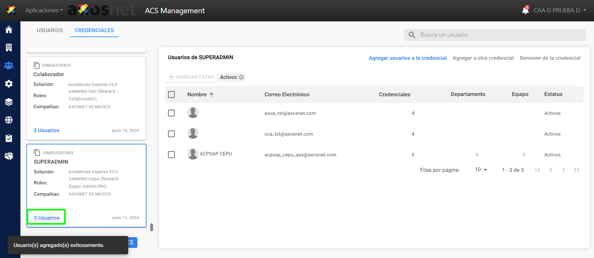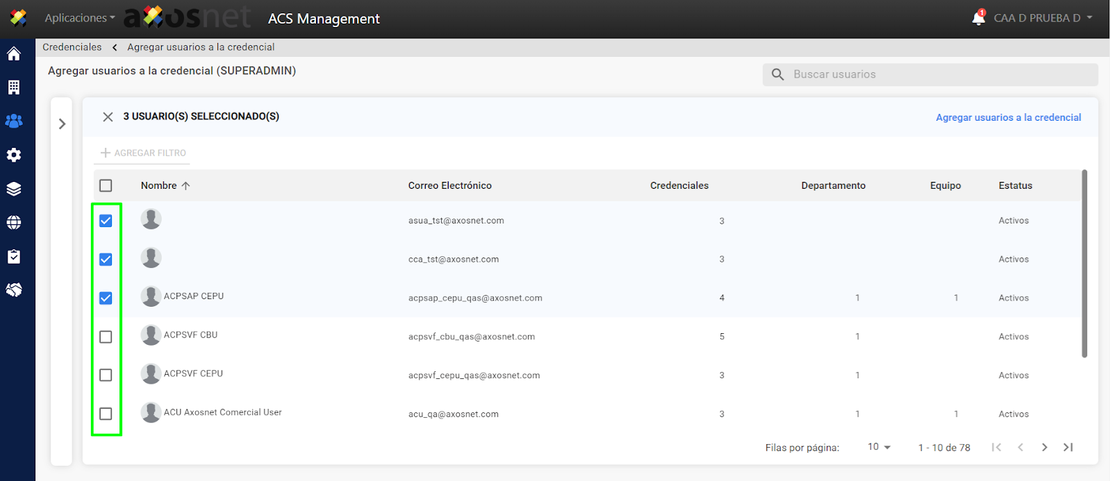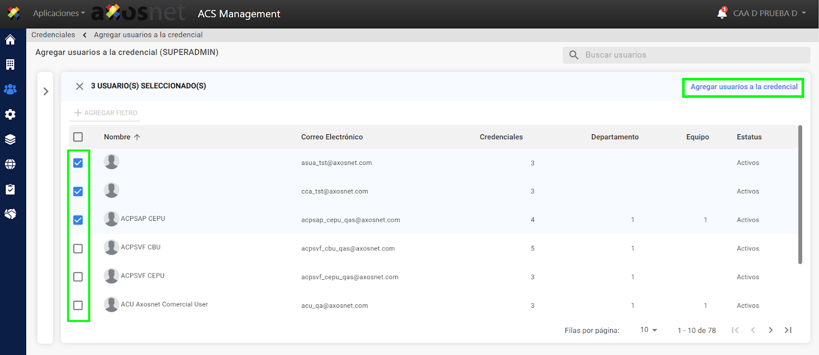 7. Seleccione los usuarios que desea añadir a la credencial y haga clic en “Añadir usuarios a la credencial”.