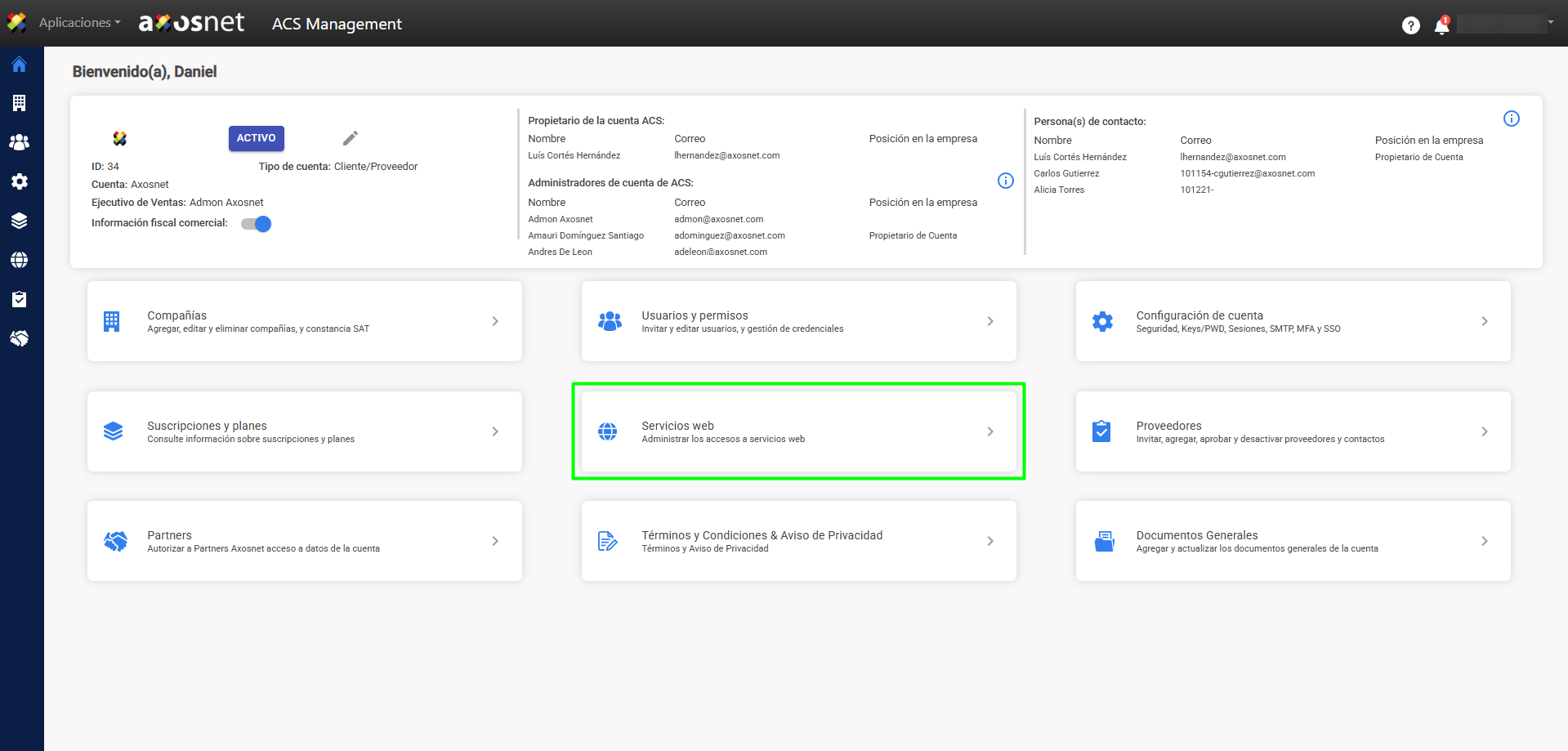 2. Haga clic en la sección Servicios Web.