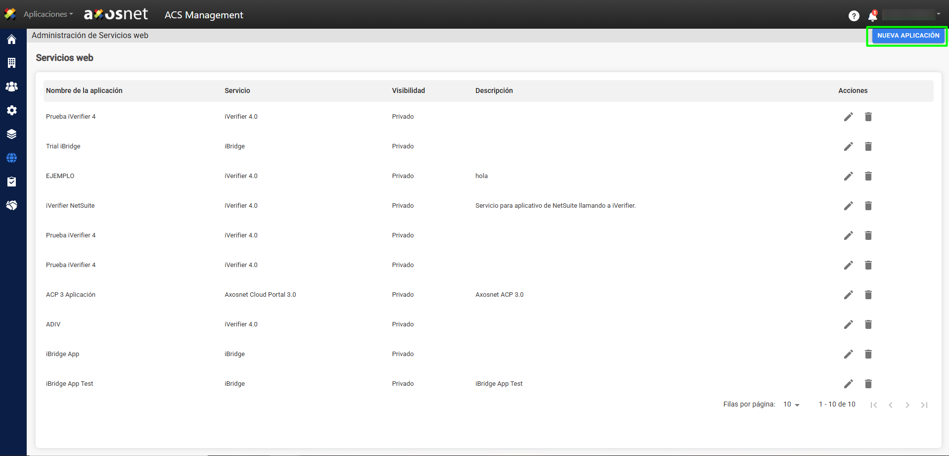Para empezar a utilizar iBridge primero debemos crear una aplicación con las llaves de acceso desde la sección de Servicios Web en ACS Management. Para hacerlo sigua los siguientes pasos: