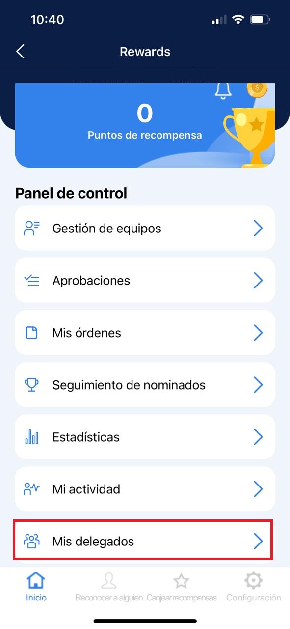 Un Delegado es un colaborador al que se le da la autorización para suplir por tiempo determinado al líder de un equipo y llevar a cabo las tareas de “Aprobar o Rechazar” los reconocimientos pendientes que se han realizado.