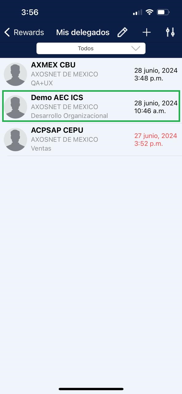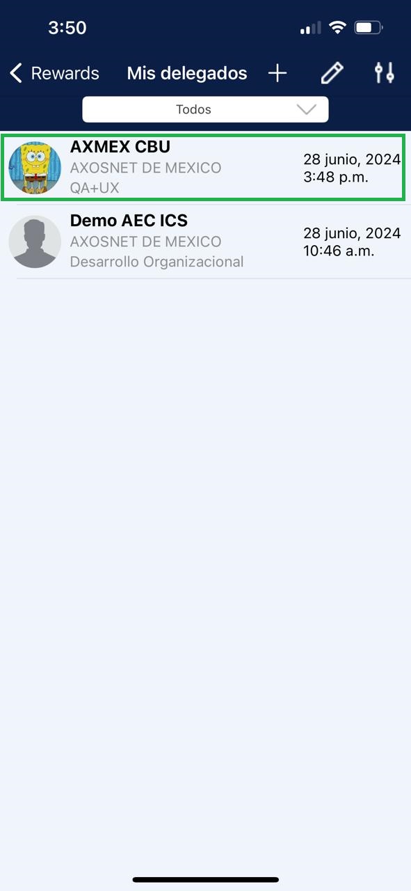 1. Dentro de la lista principal de Mis delegados, seleccione al colaborador que desea modificar.