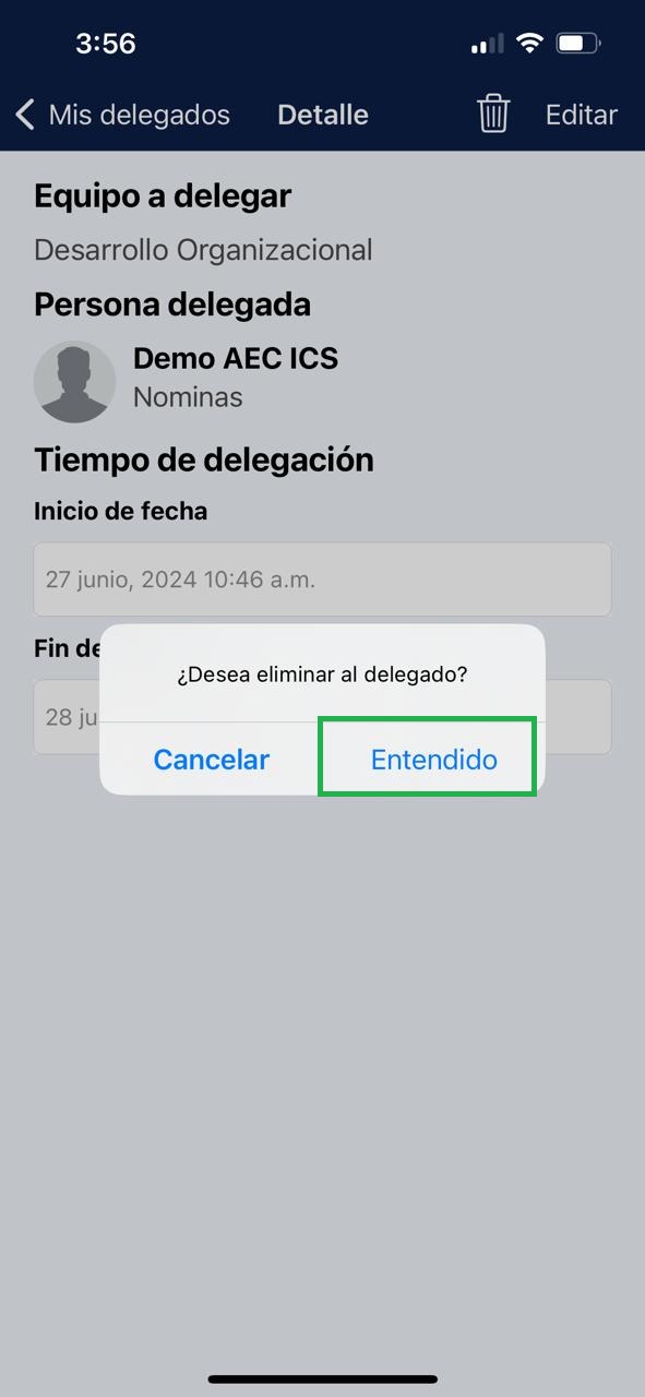 Se podrá eliminar a un delegado, ya sea interrumpiendo el periodo de delegación o una vez que ya haya expirado el rango de tiempo.