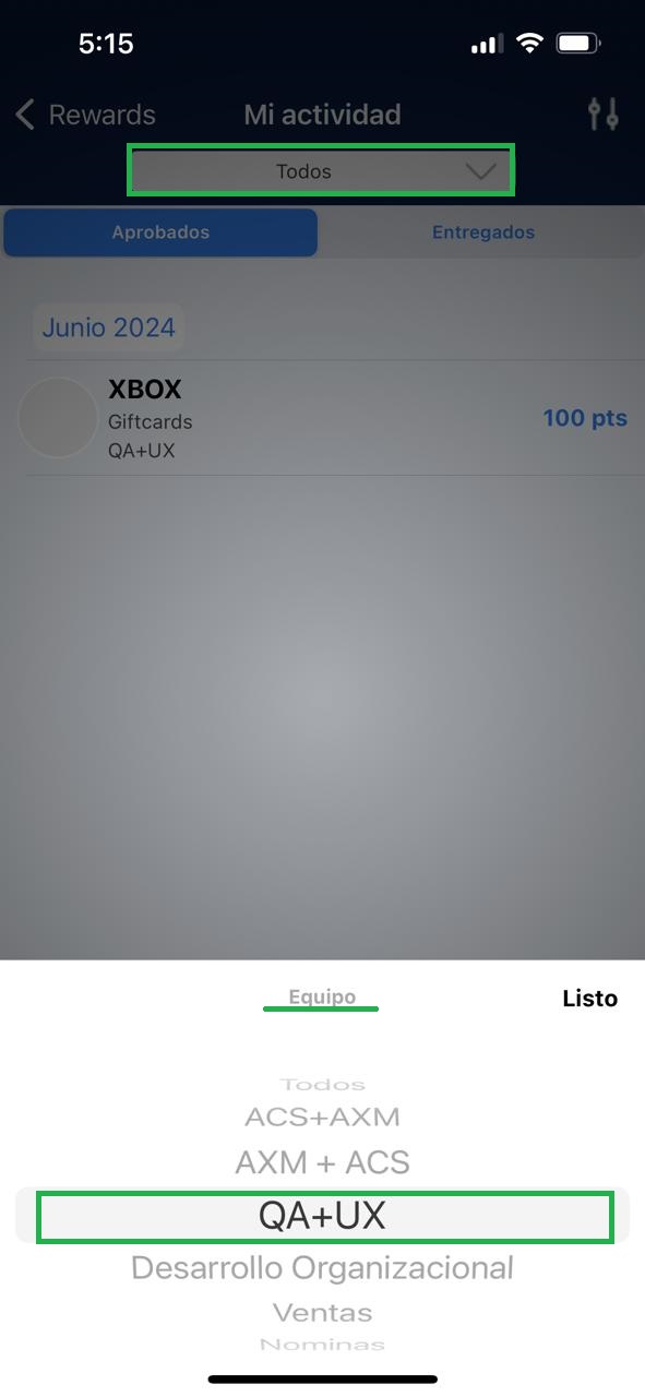 2. Dentro del menú desplegable de equipos se encuentra la opción predeterminada “Todos”, si lo requiere, seleccione un equipo para ver a los delegados en específico.