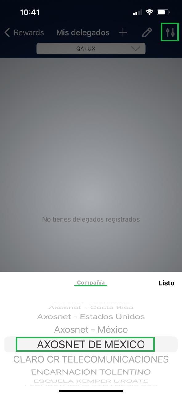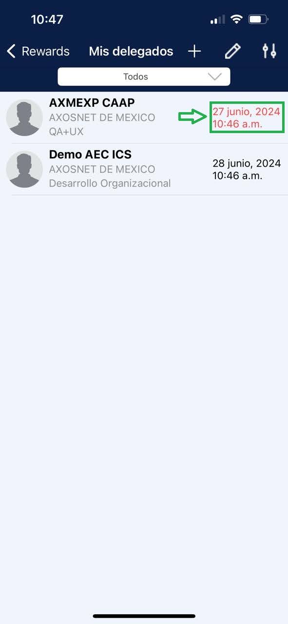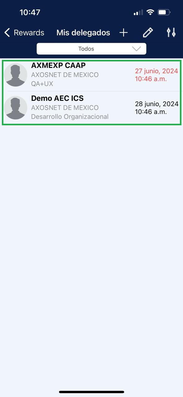 3. Si hay registros activos de Delegados, se mostrarán en la página principal de Mis delegados.
