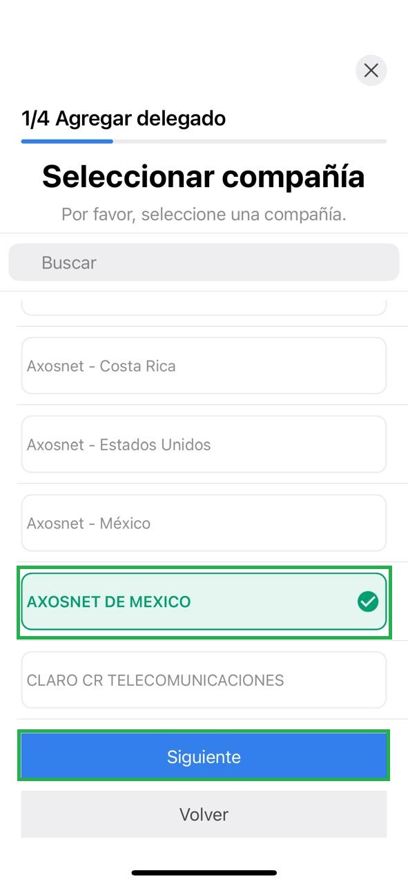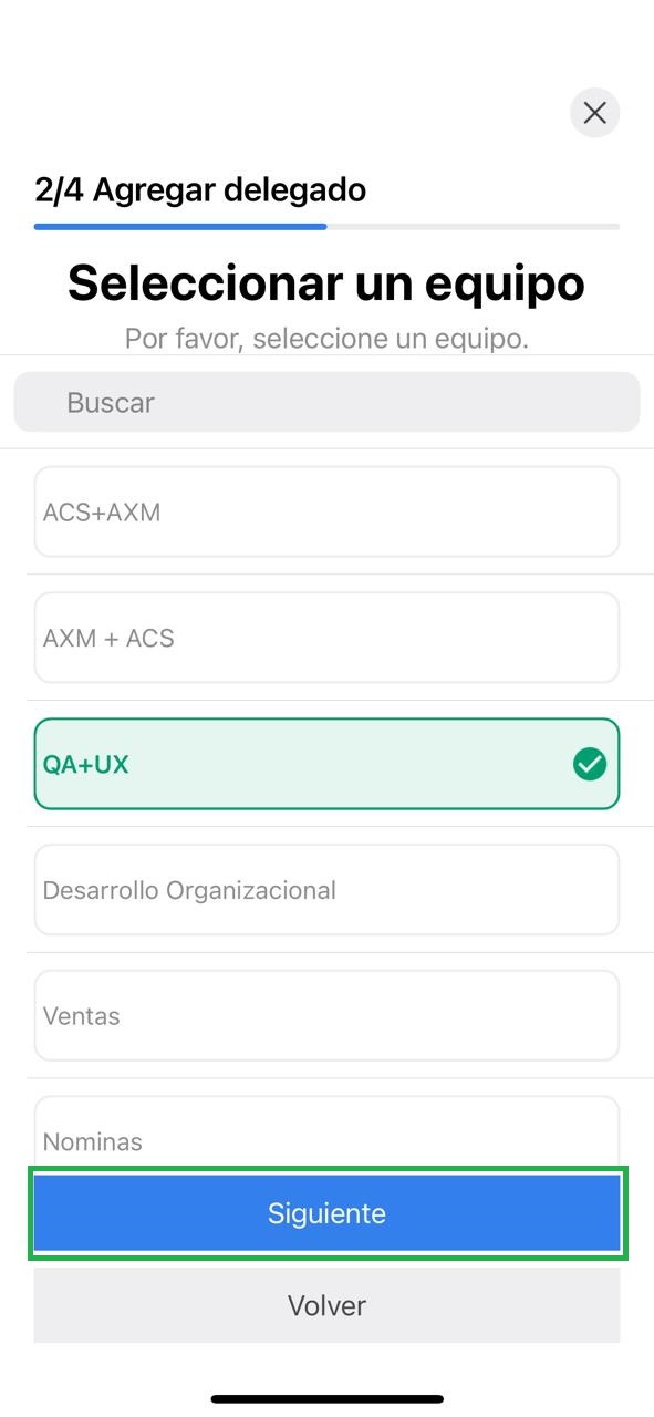 3. Elija el equipo a delegar y después de clic sobre “Siguiente”.
