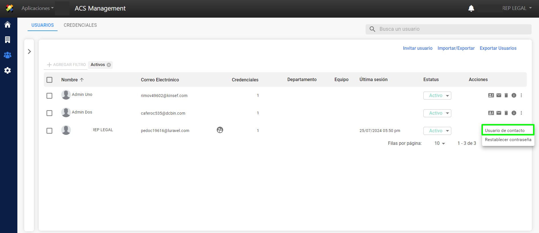 Activar/Desactivar Usuarios de Contacto