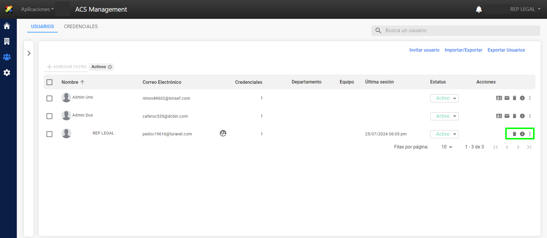 Nota: Si el usuario tenía permisos otorgados por el cliente al realizar esta acción (desactivación), el usuario pierde todos los permisos.